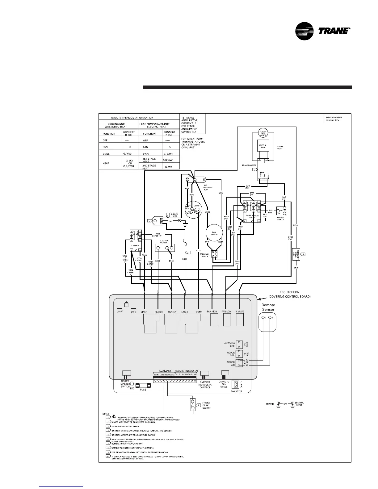 Trane PTEC-120 - Power Door and Two Stage Heat Schematics