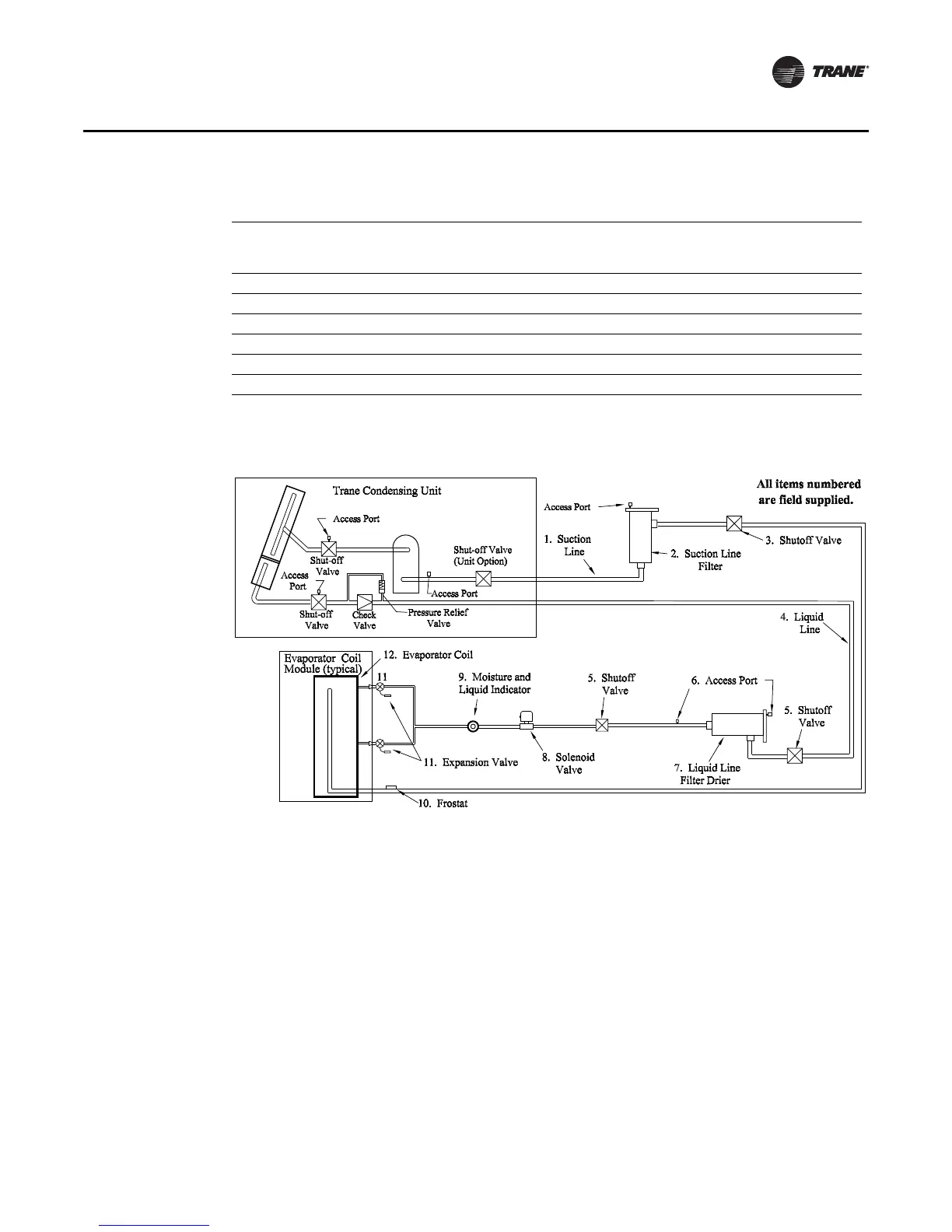 (4)Interconnecting Liquid Line Tubing. If risers exceed 10 feet, Trane must review the application