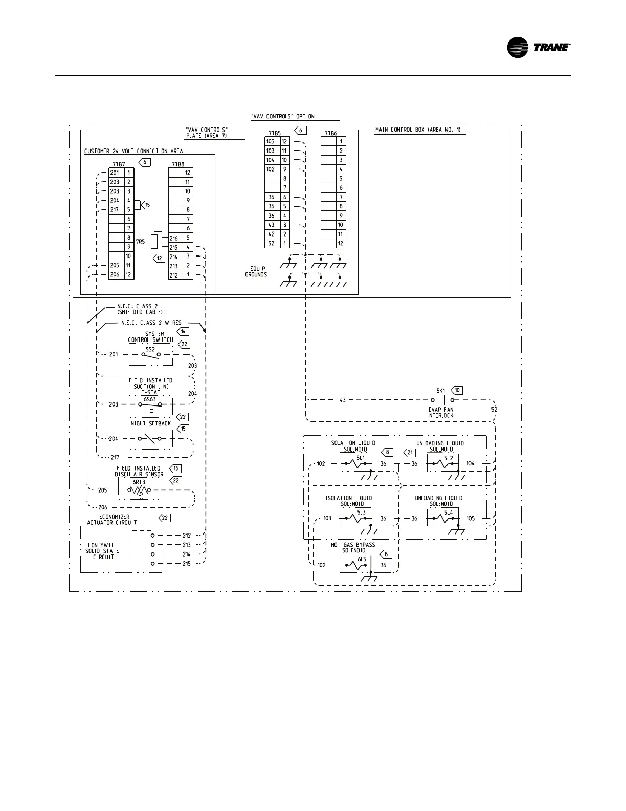 Figure 50. Field connection diagram RAUJ 20 to 60 tons variable air volume control