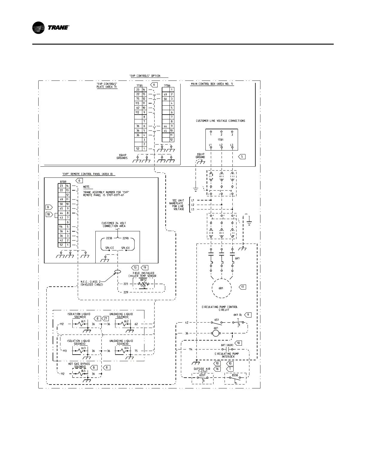 Figure 58. Field connection diagram, RAUJ 80 to 120 tons EVP chiller applications