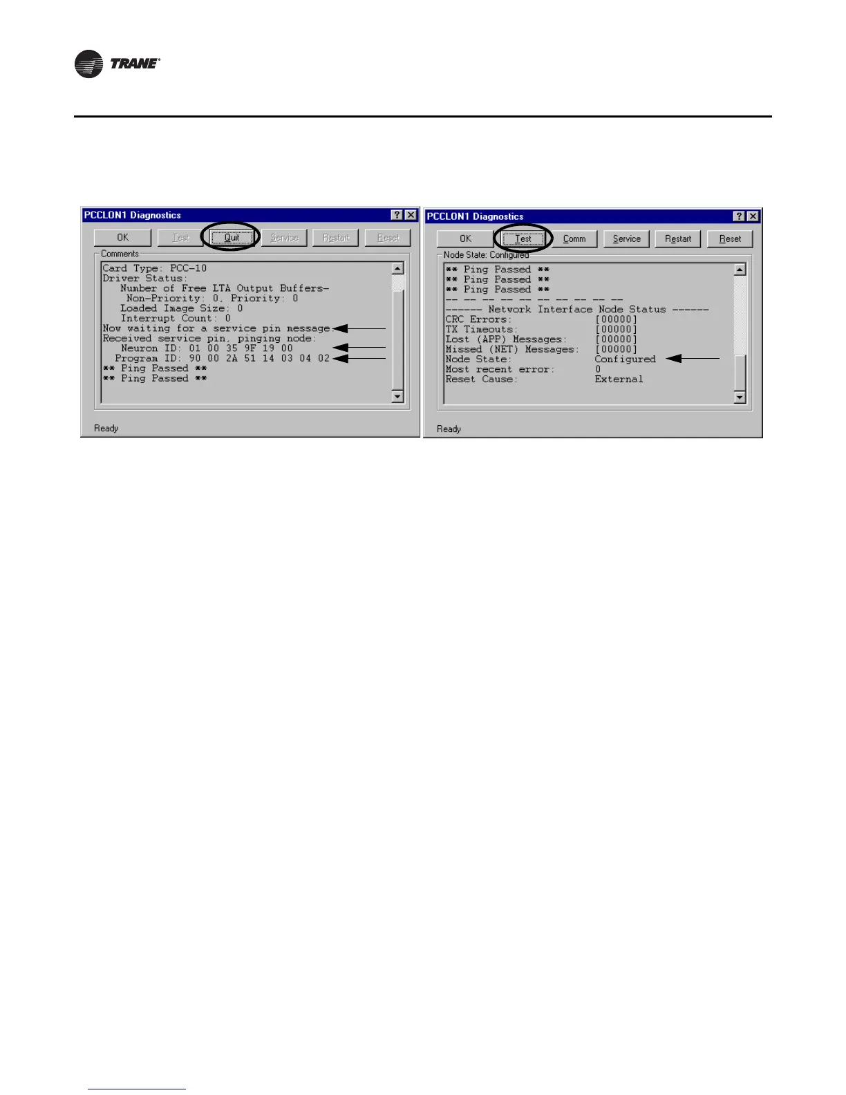 Figure 9. Neuron ID, Program ID, Ping Passed, and Node State: Configured