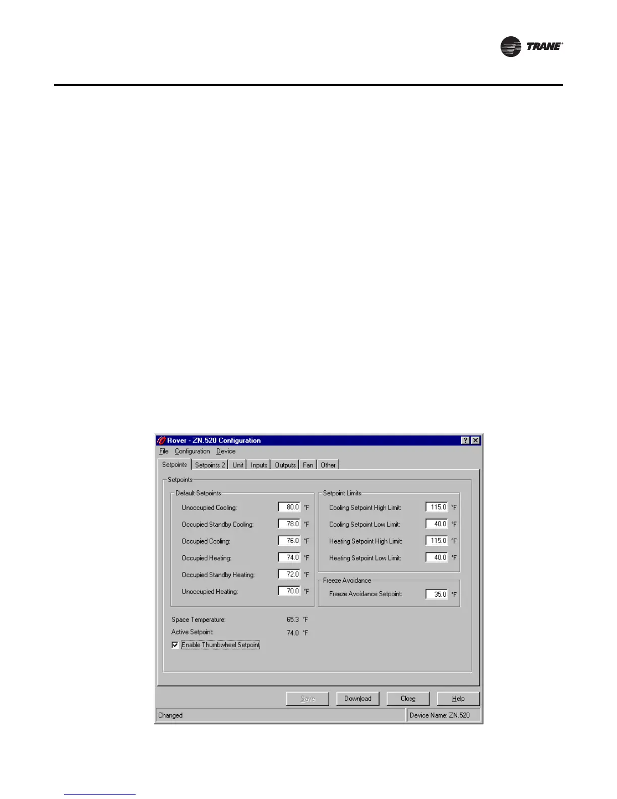 Device configuration is available only on certain Trane devices.