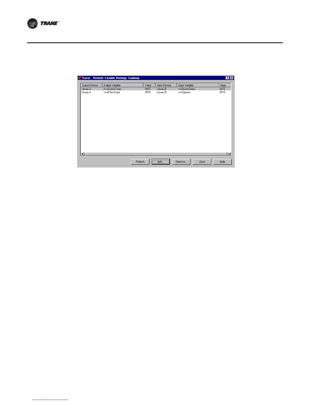 2. From the Group menu, choose Bindings to display the Network Variable Bindings Summary
