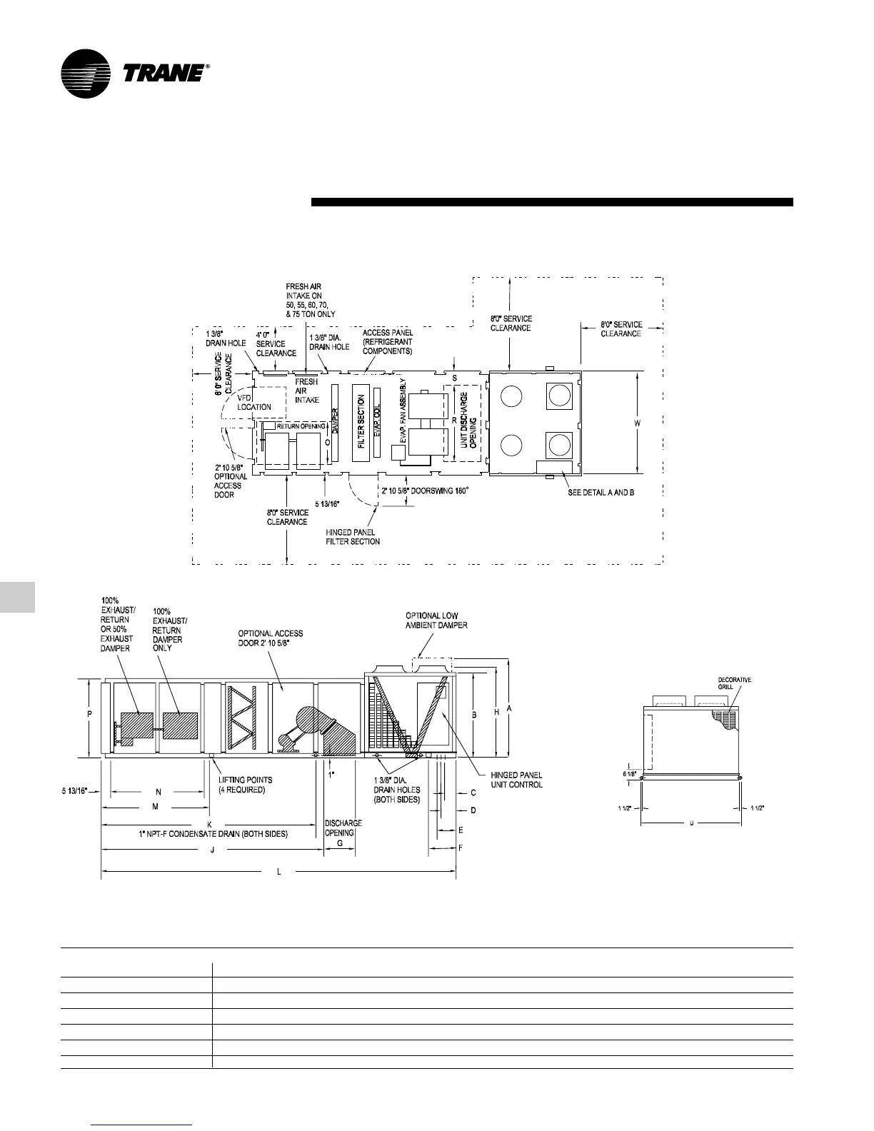 Trane RT-PRC010-EN - Dimensional Data; Dimension and Weights