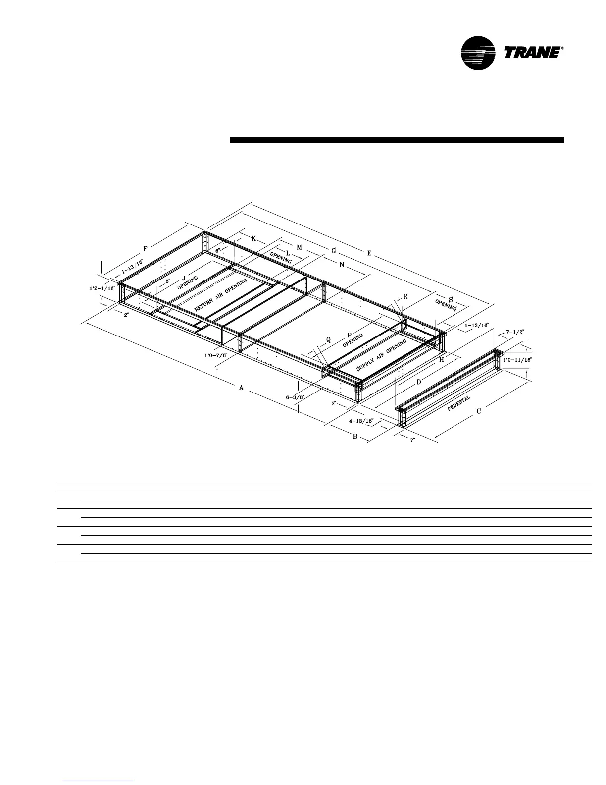 standard roof constructions with both the supply and return openings. The return air opening of the curb is at a 90 degree angle as compared to the rooftop return air opening to allow