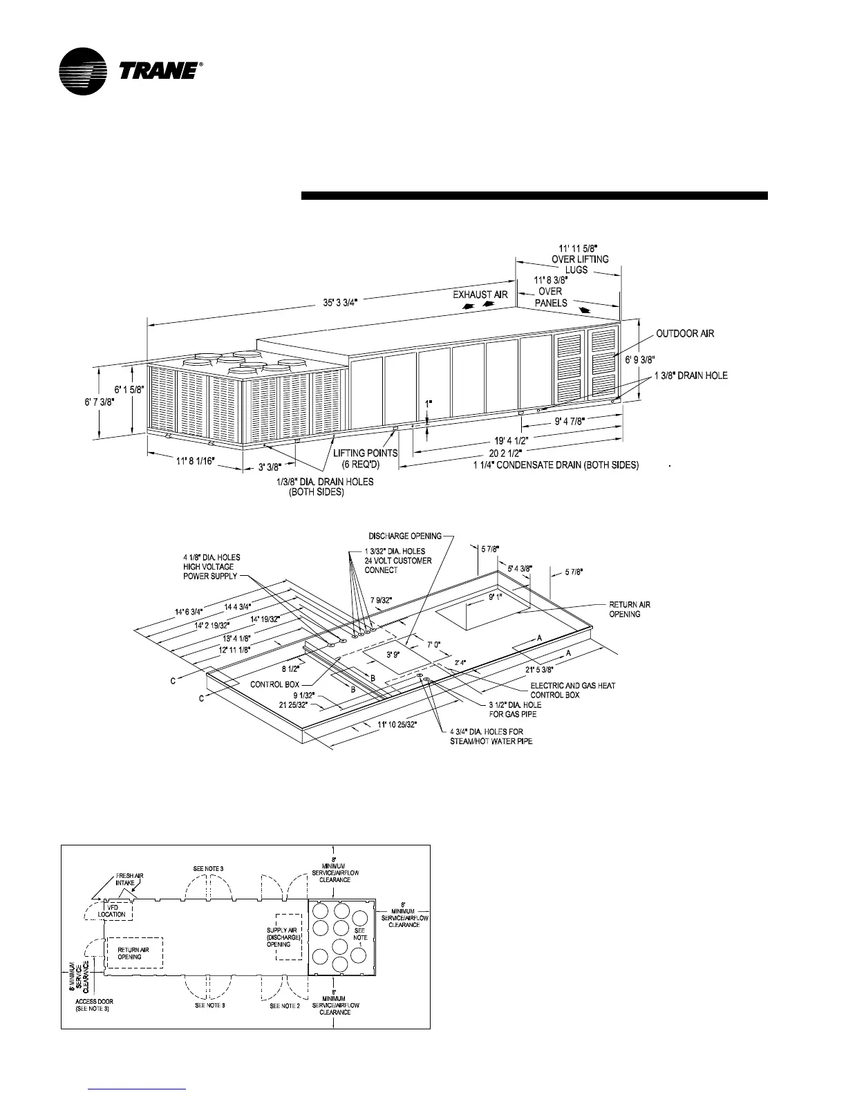 4. 90-130 ton models have two outdoor air intakes located at the back