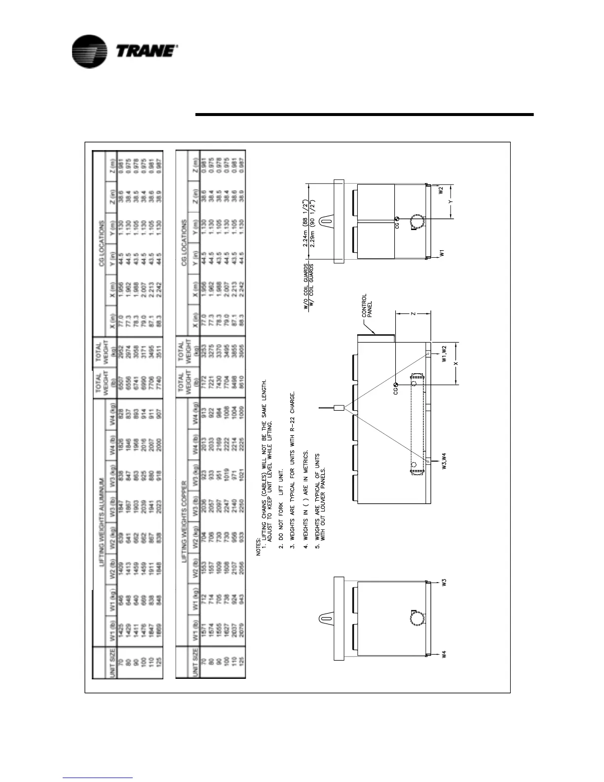 Trane RTAA-125 - RTAA Rigging and Lifting Weights - Packaged Unit