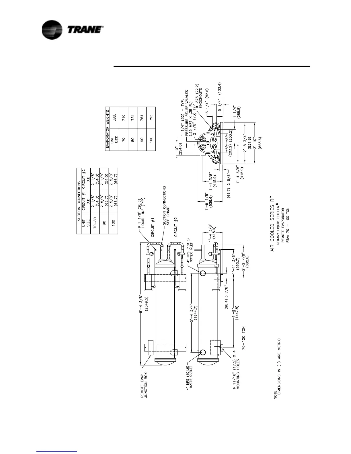Trane RTAA-125 - Remote Evaporator Dimensions, RTAA 70 - 125 Tons