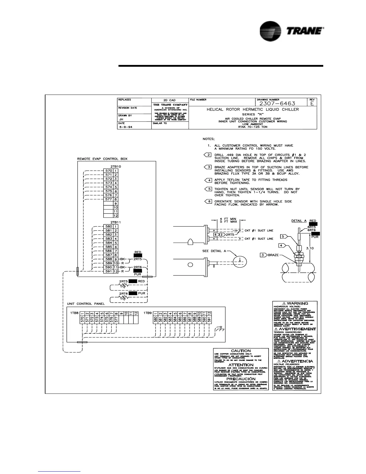 Trane RTAA-125 - Refrigerant Sensor Mounting and Wiring