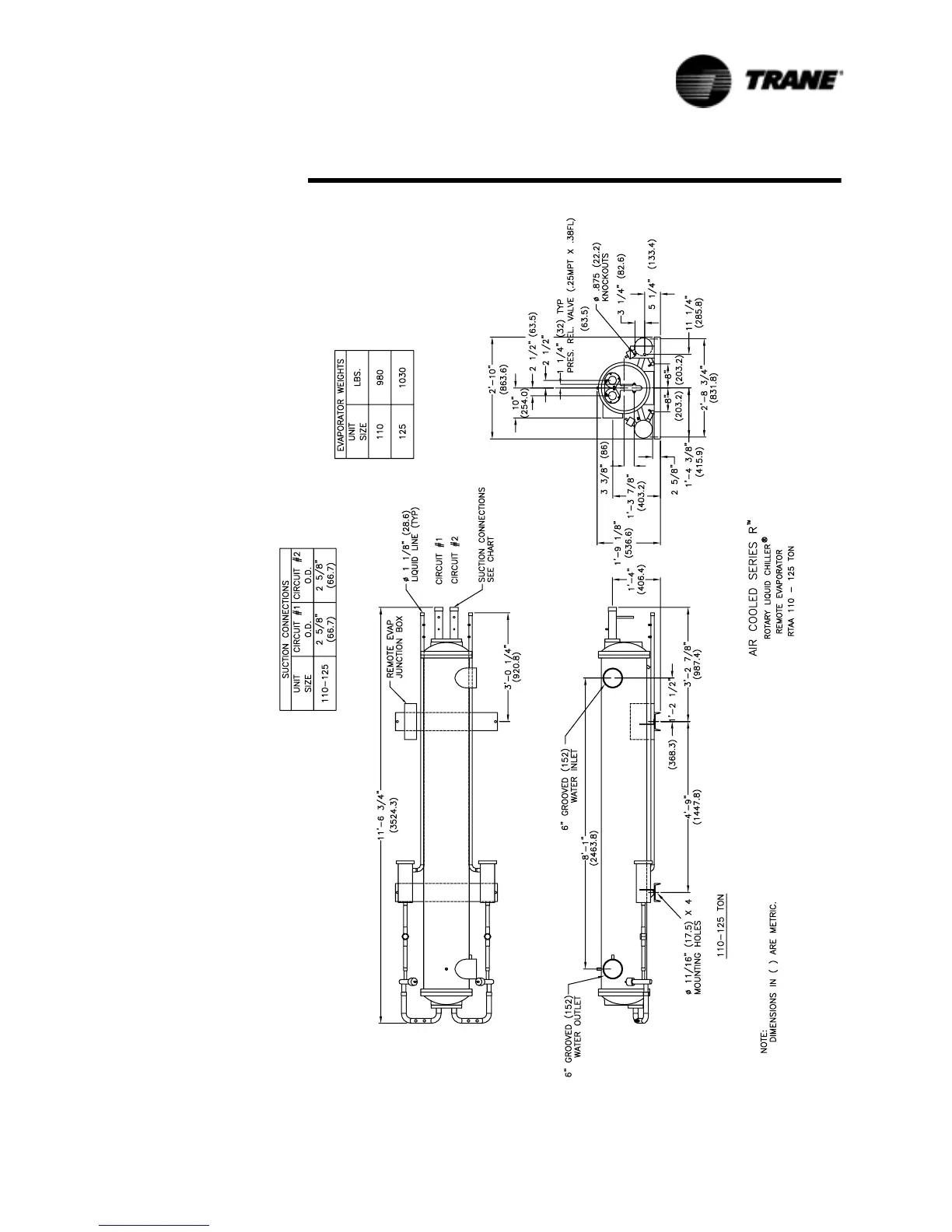 Trane RTAA-70 - Remote Evaporator Dimensions, RTAA 110 - 125 Tons