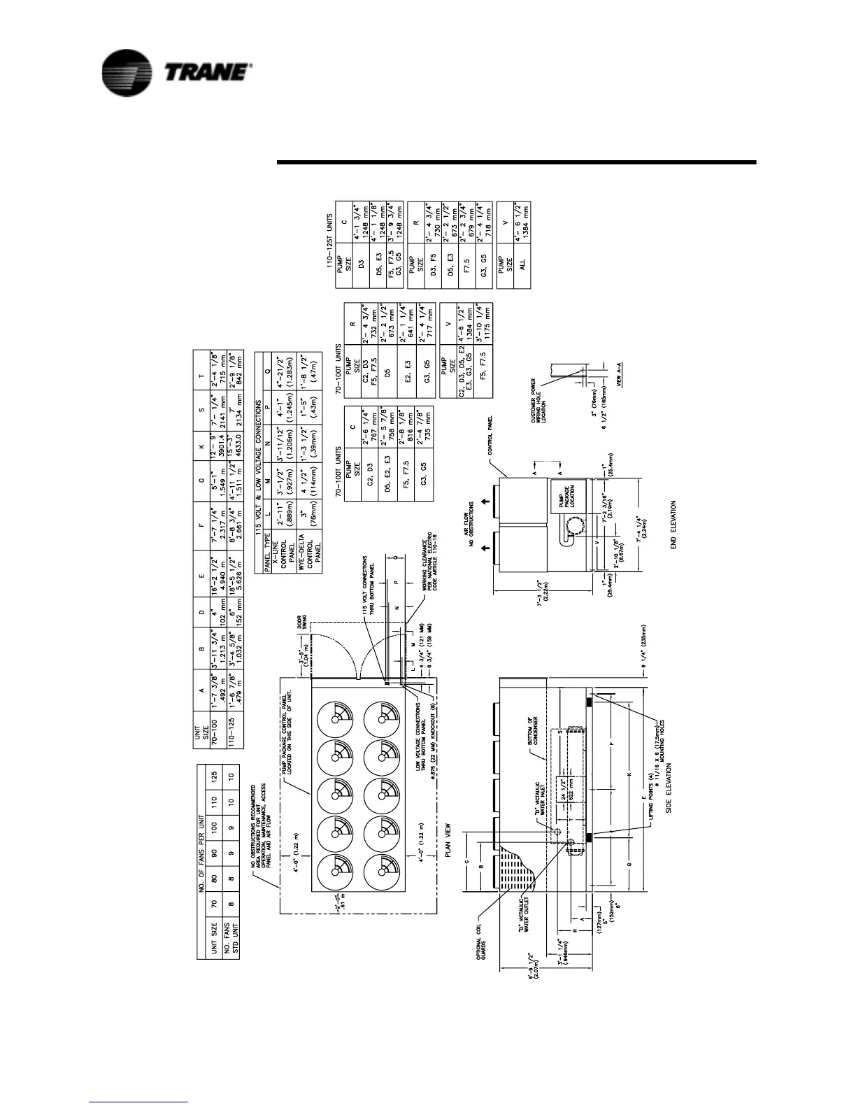 Figure 12 Dimensions and Clearances for RTAA with Pump Package 70 – 125 Tons