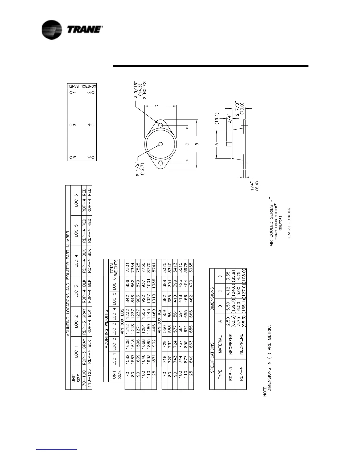 Trane RTAA-90 - Isolator Placement for Typical RTAA Packaged Unit 70 - 125 Tons