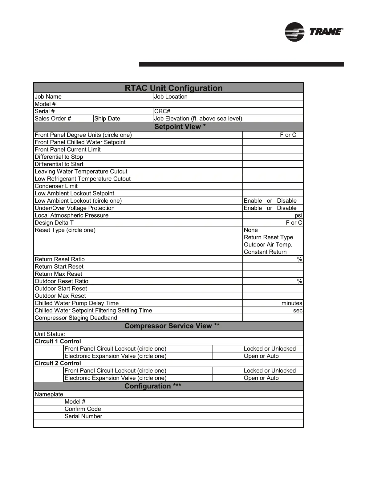 *** Using Techview, click on "View" and then click "Conguration" (Nameplate Tab) Log accordingly.