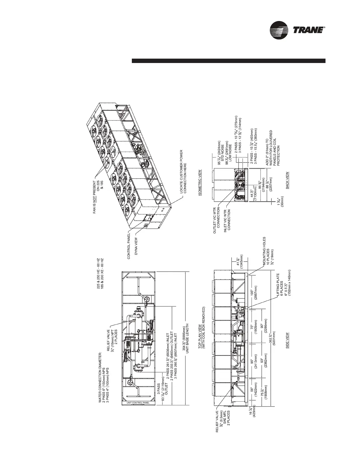 Fig. II-09 - Unit Dimensions 225-250 HE 185-200 XE Ton, 60 Hz