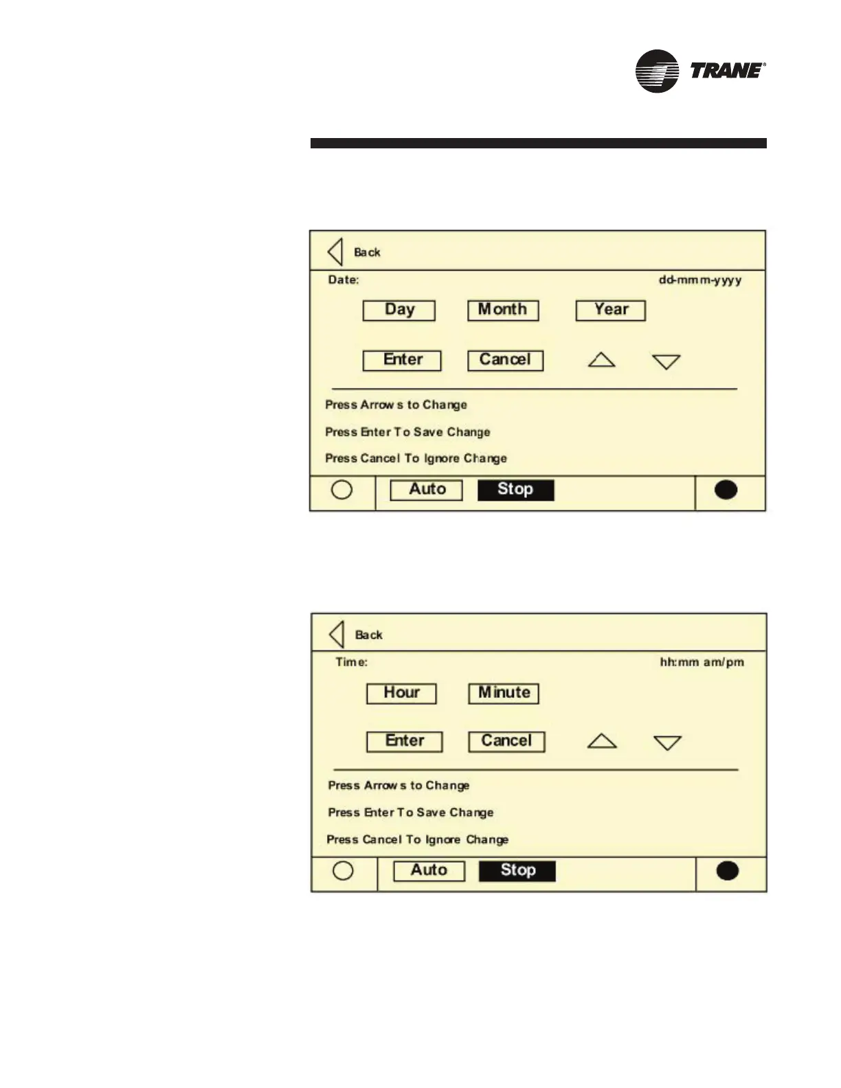 The setpoint screen for setting up the CH530 date is shown below: Select Month,