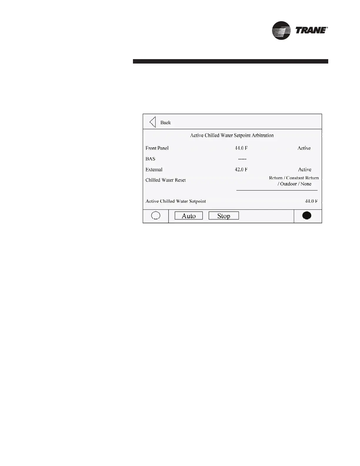 controlling. It is determined by the front panel, Tracer, or external setpoints, which