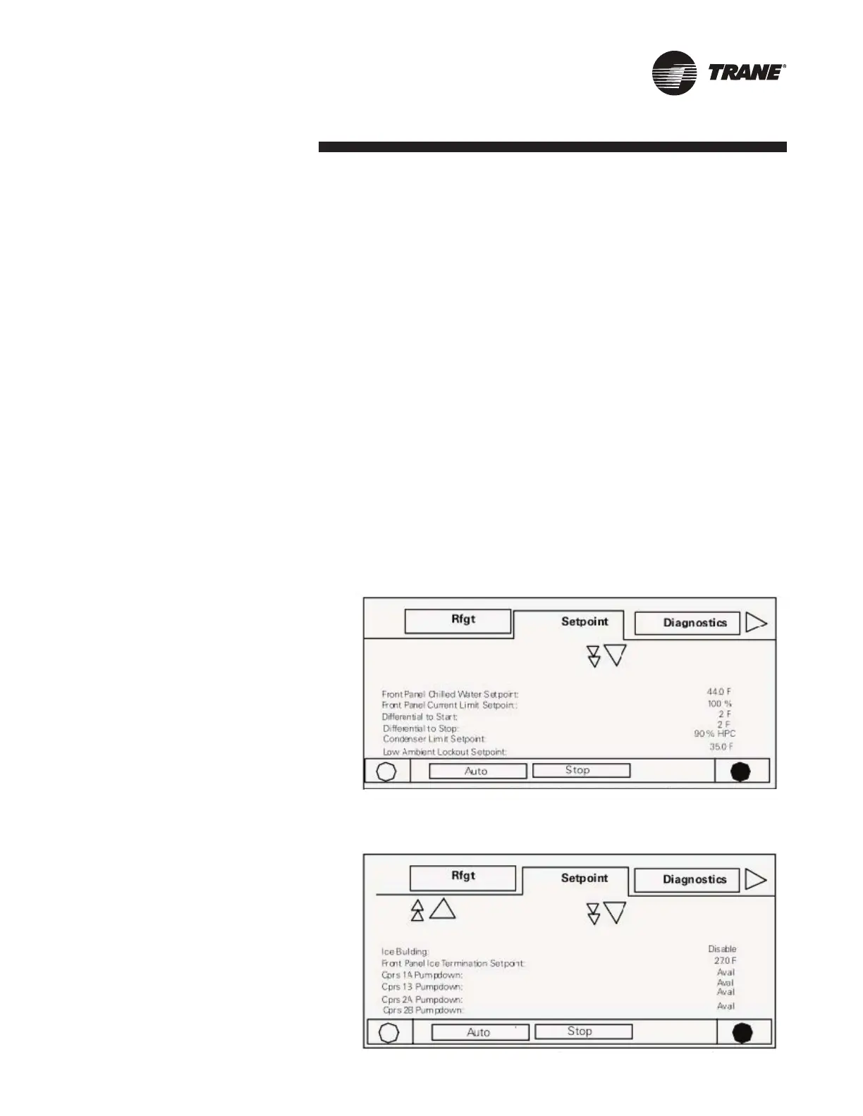radio buttons. Analog setpoints are displayed as spin buttons. The lower half of the