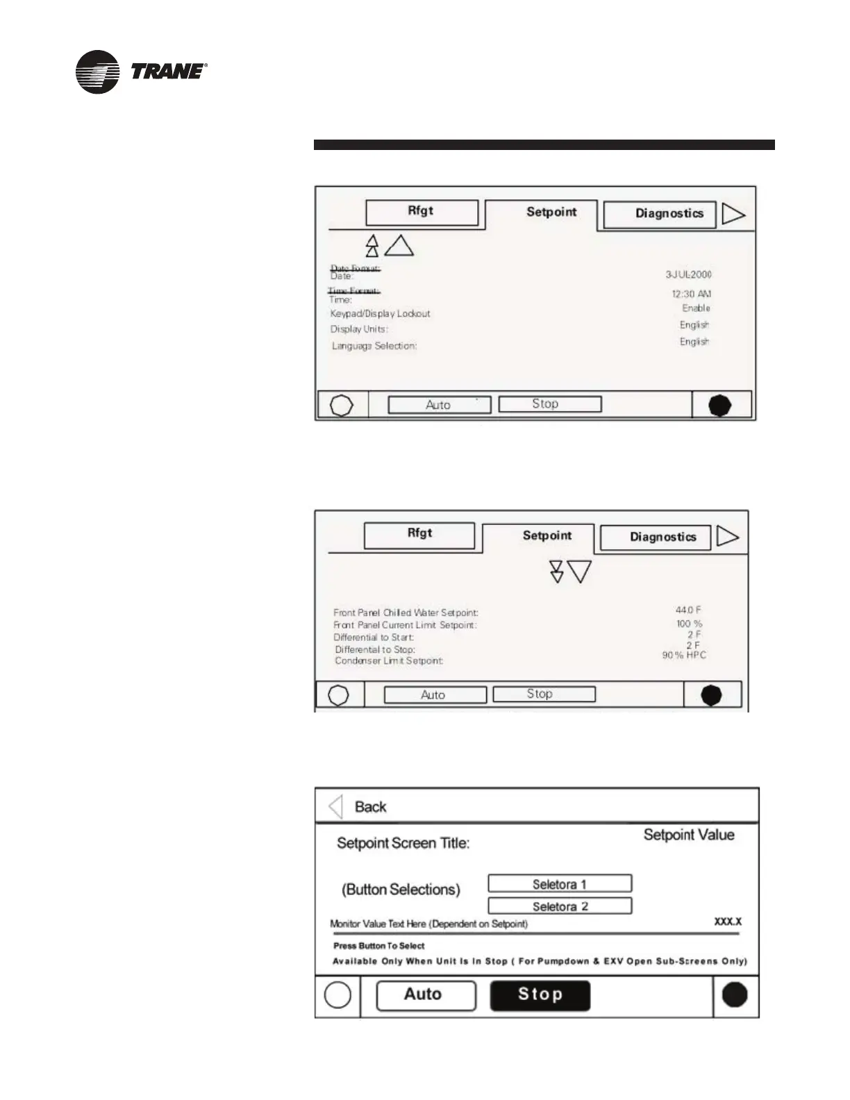 Trane RTAC 350 Series - Controls Interface - Setpoint List and Enumerated Subscreens; Setpoint List Screen for Review;Change