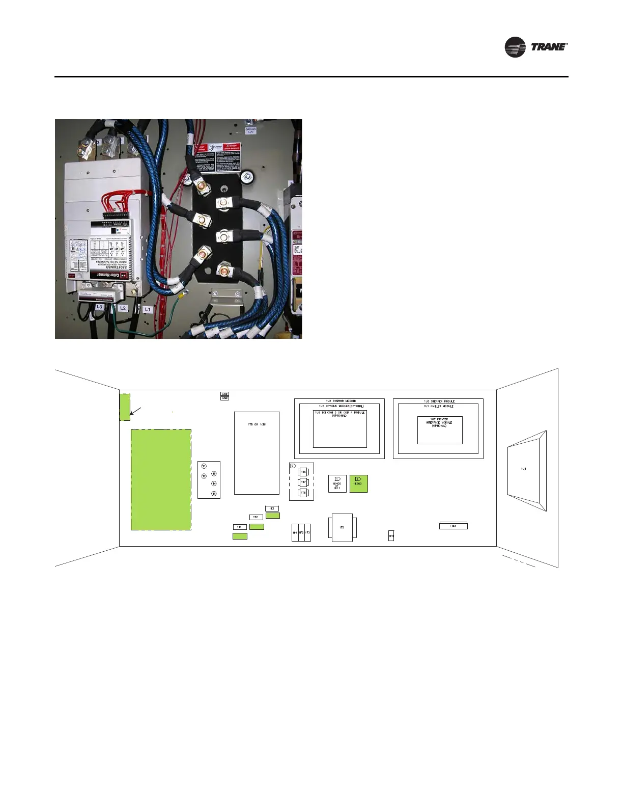 Figure 26. Location of Benshaw starter and additional components (highlighted) — RTHC