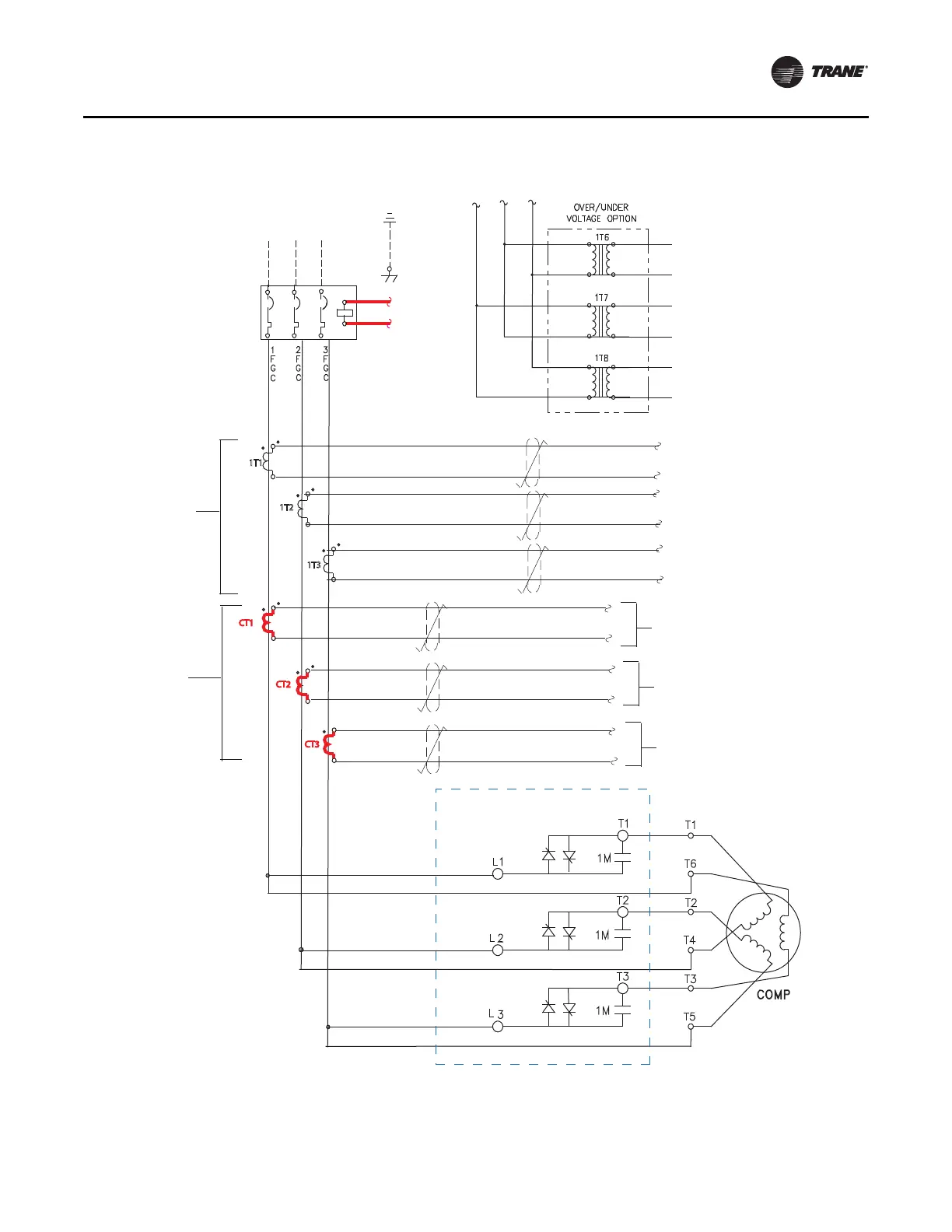 Figure 29. Power wiring (new wiring bold/highlighted in red)— RTHC