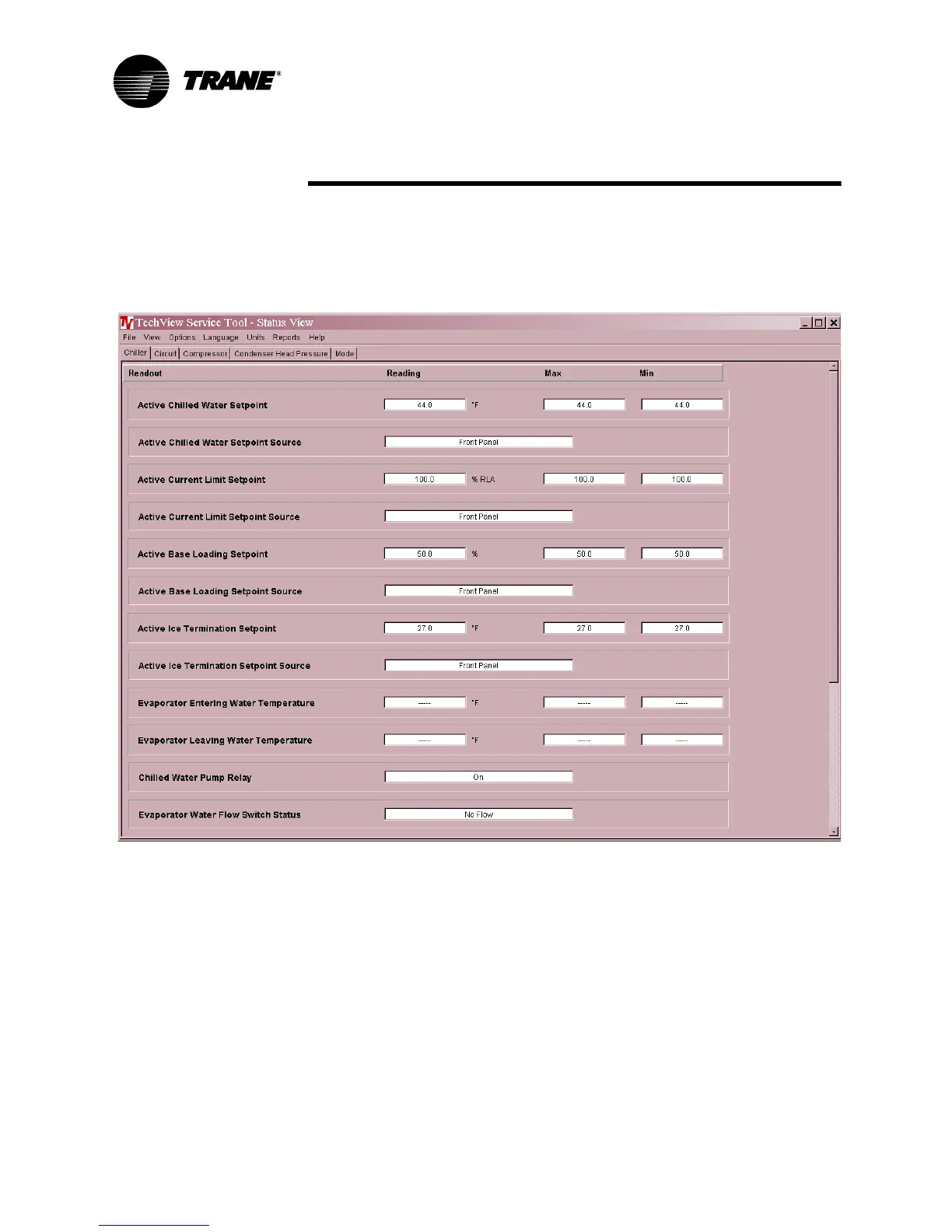 subsystem tabs. As data changes on the chiller it is automatically updated in