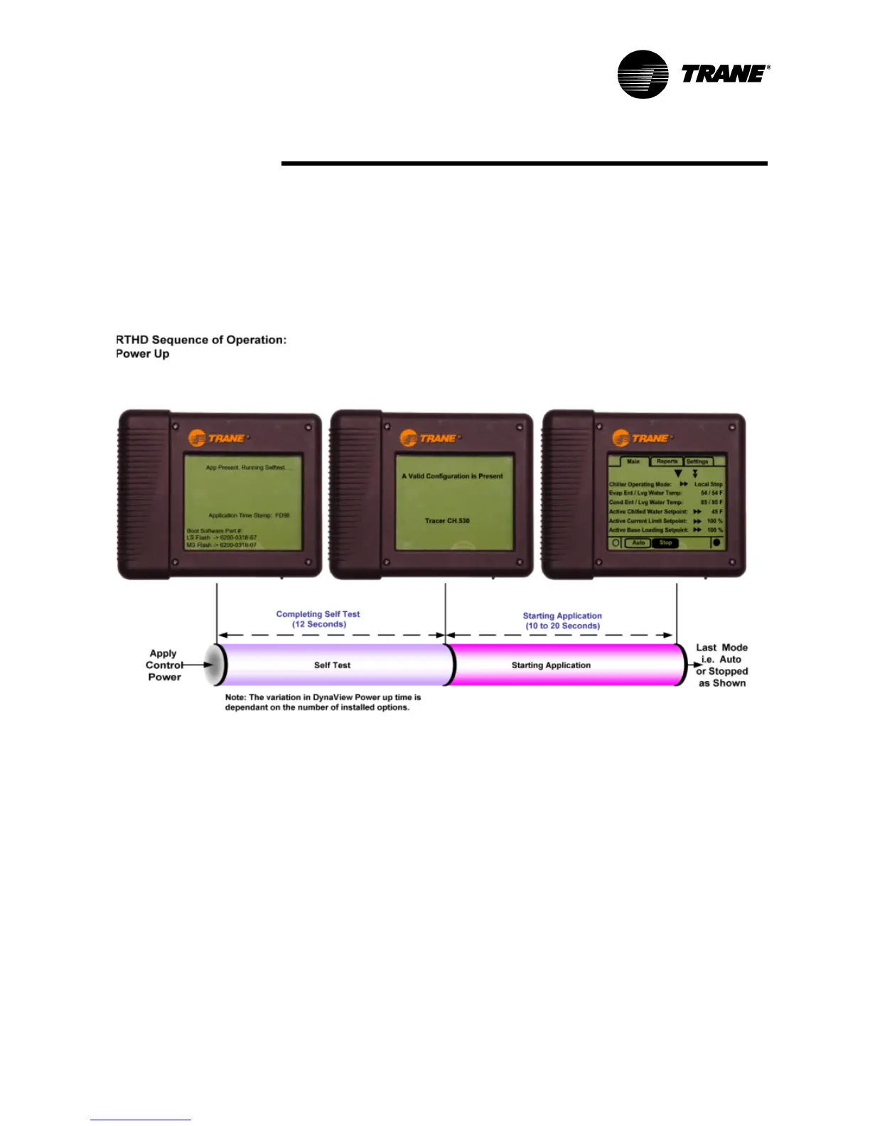 The Power up chart shows the respective DynaView screens during a power