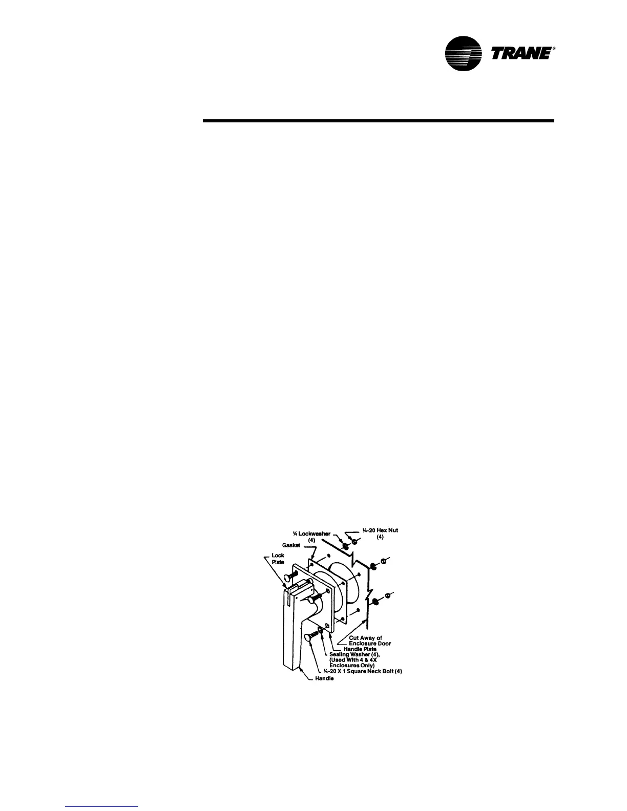 1. Attach the handel and gasket to the enclosure door and secure with the