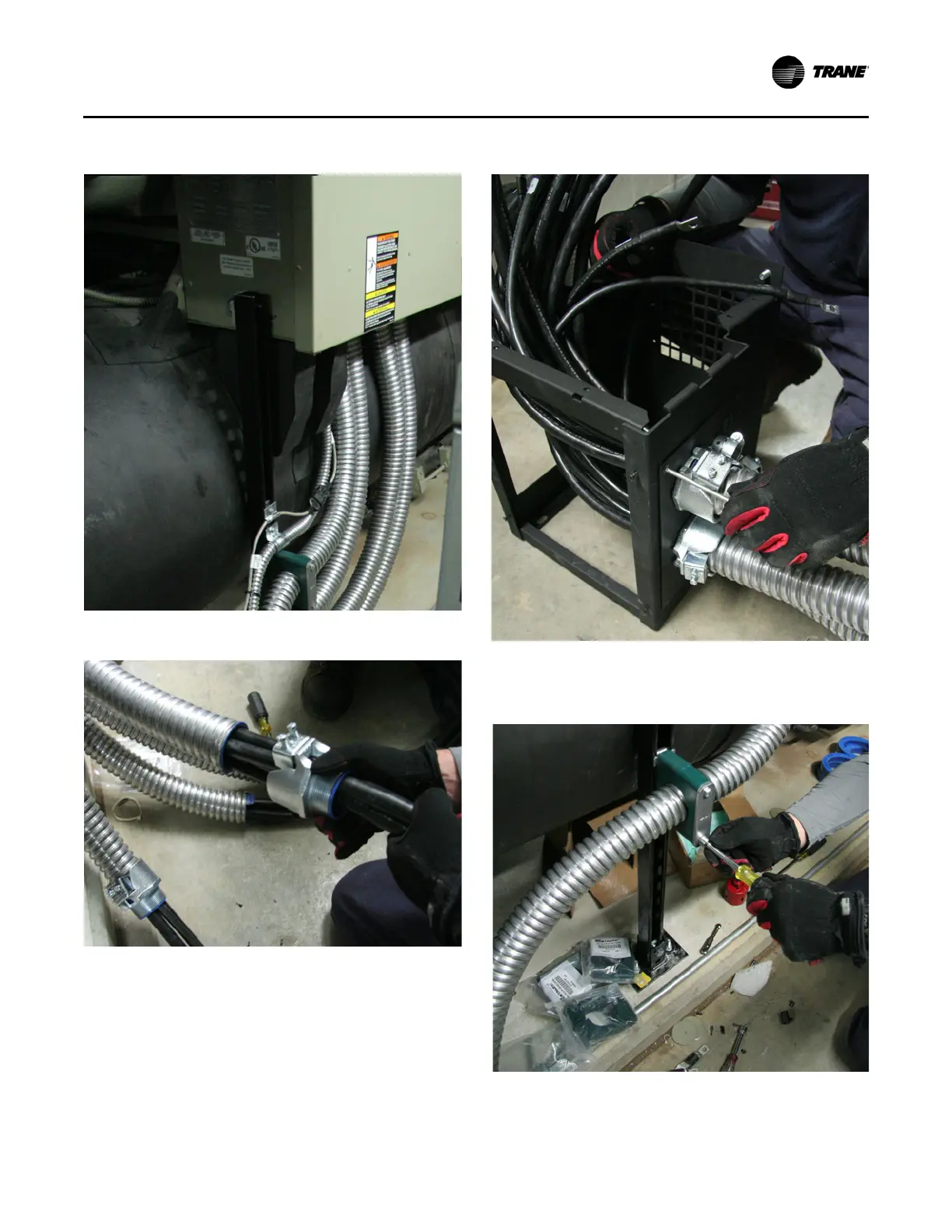 7. Install the power wire conduits to the strut channel using