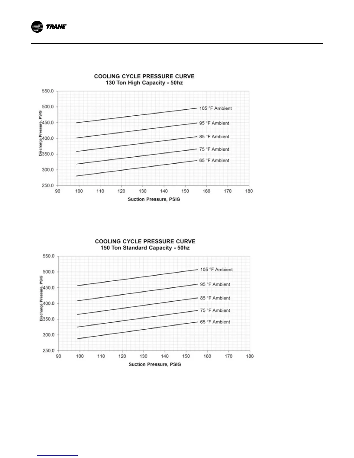 Figure 101. Operating pressure curve (all comp. and cond. fans per ckt. on)—150 tons standard capacity