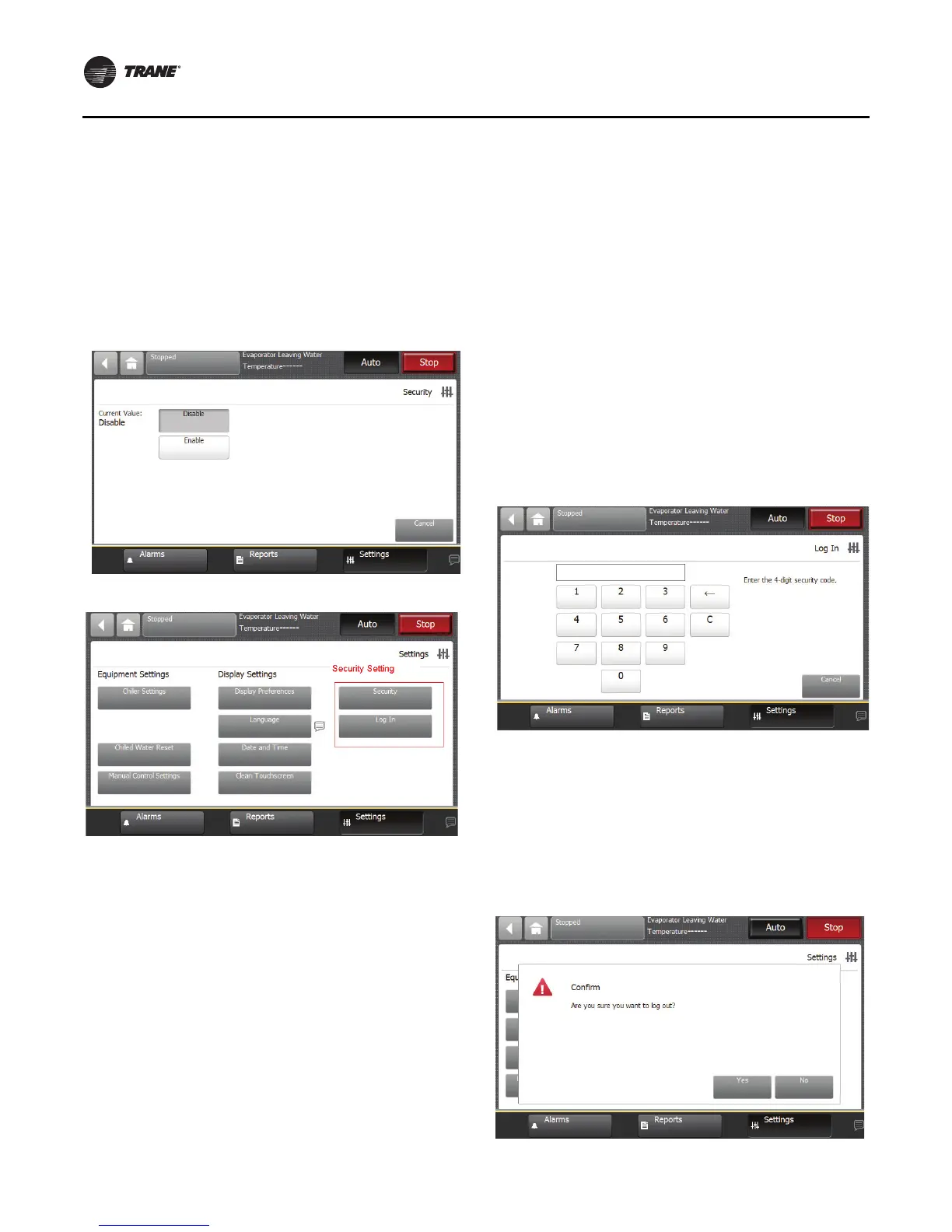 Figure 38. Security settings screen
