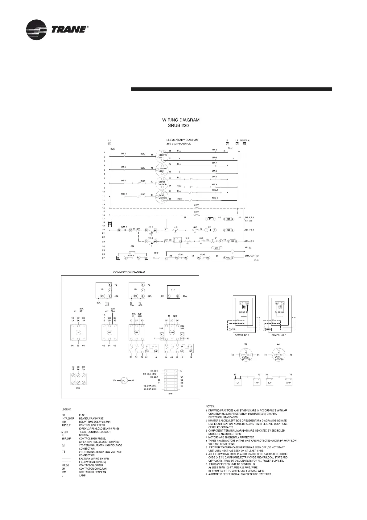 Trane SRUB 250 - Electrical Wiring - SRUB 220