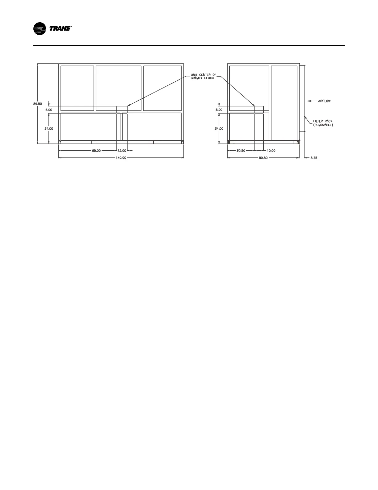 Figure 8. Gravity block location and dimensions for 90 to 110 ton units