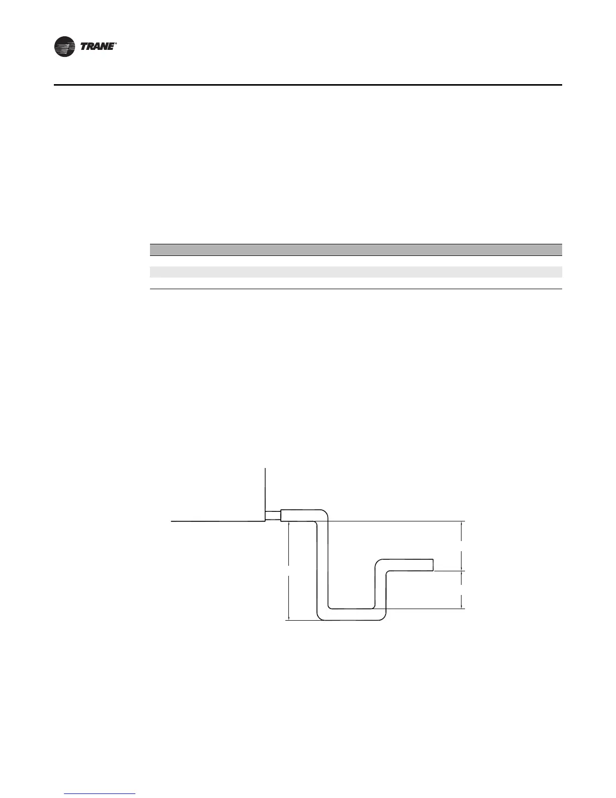 connection lines horizontal or downward toward an open drain. Trane recommends installing a