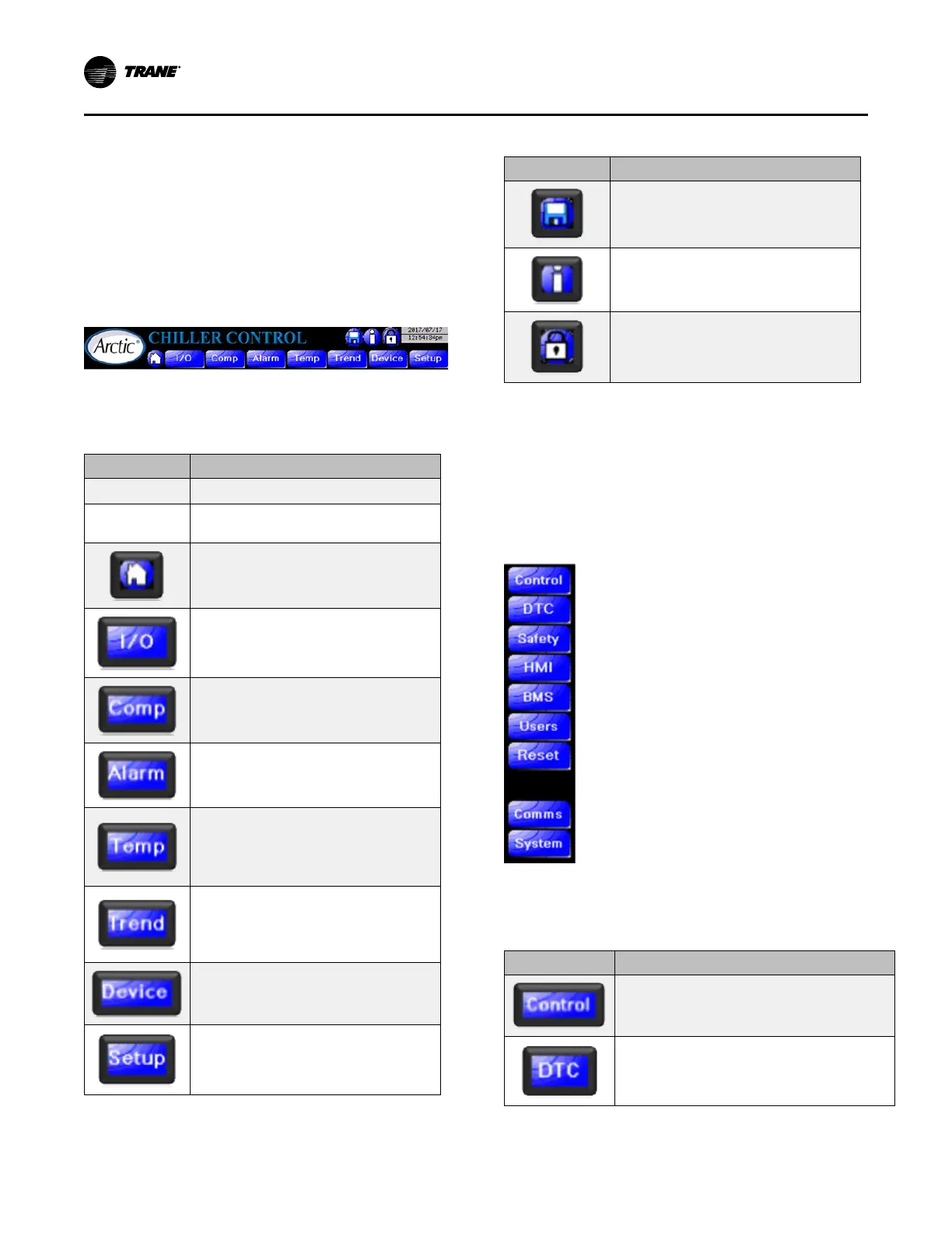 Displays chiller control page which includes setpoint