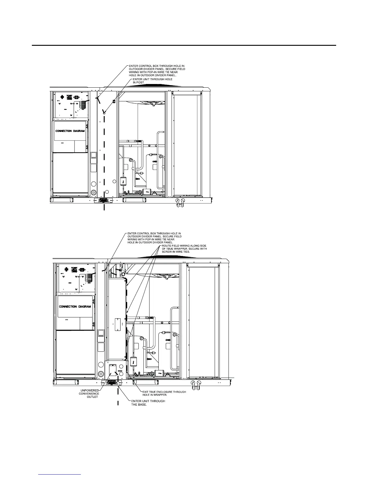 Figure 47. Electromechanical (without TBUE) control customer wire routing (10 ton high efficiency)