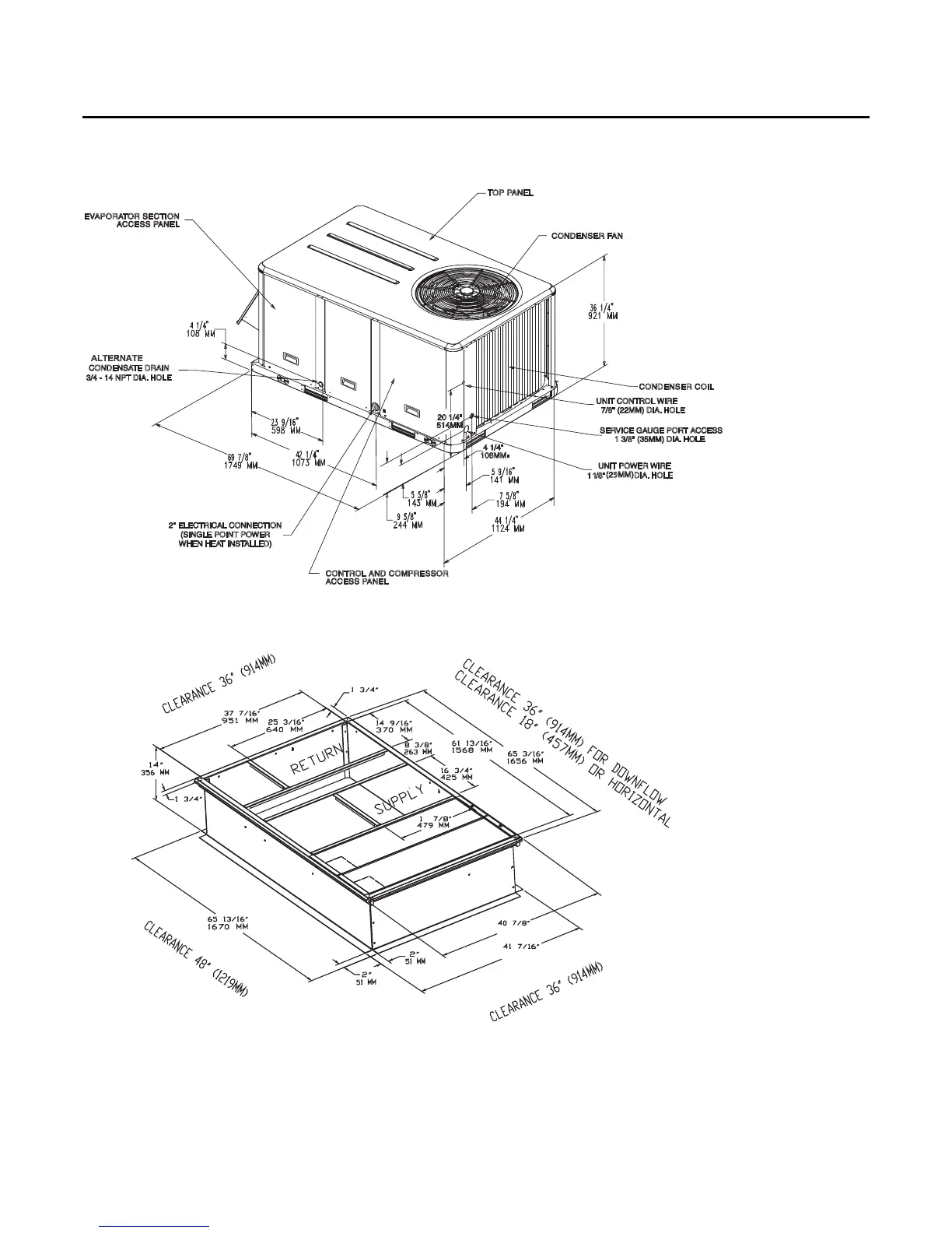 Figure 3. 3-5 ton standard efficiency, 3 ton high efficiency - roof curb