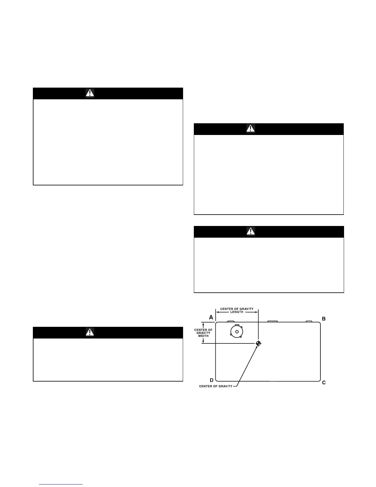 center of gravity lift point. To avoid dropping of unit,