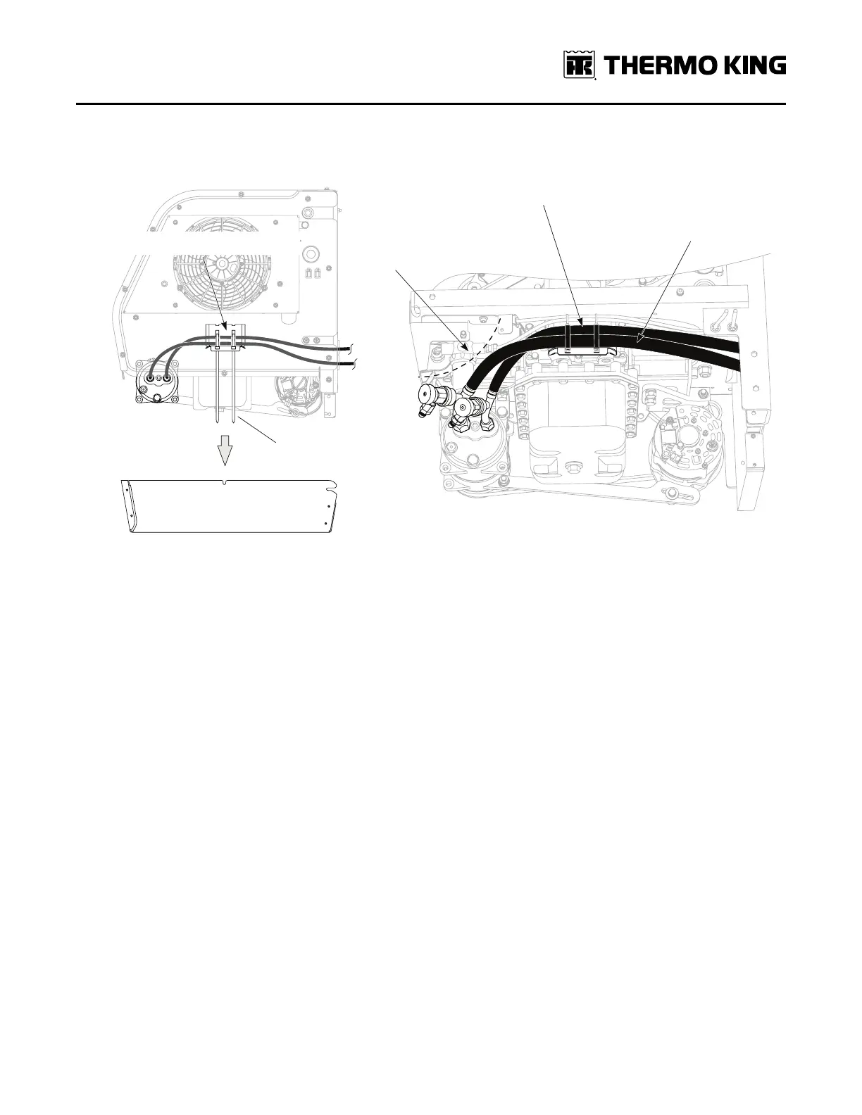 a. Route the hose down through the 3” access hole in the tractor floor to the receiver drier.