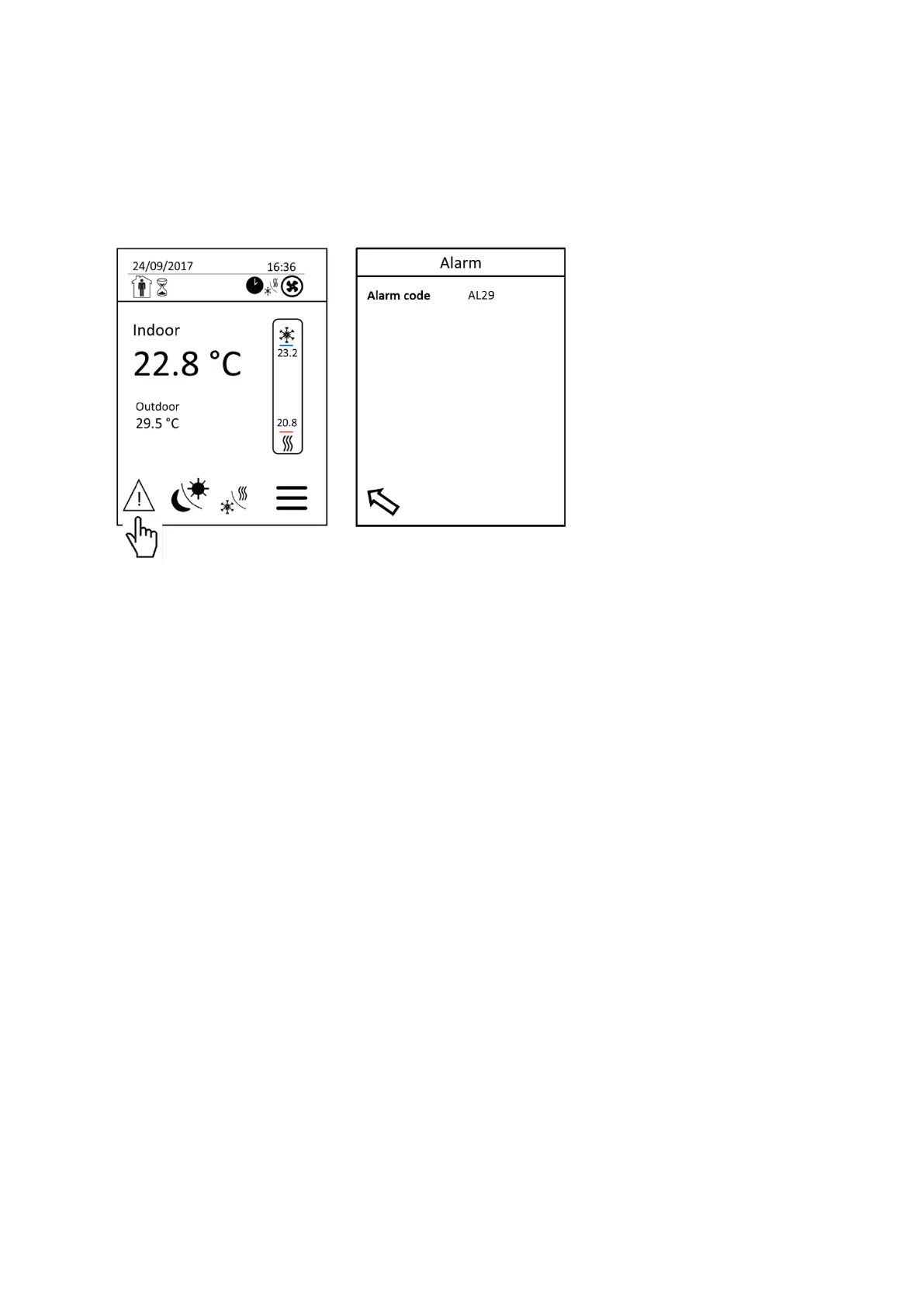 When there is an alarm active then the icon is visible. Touch the Alarm button to see the alarm code.