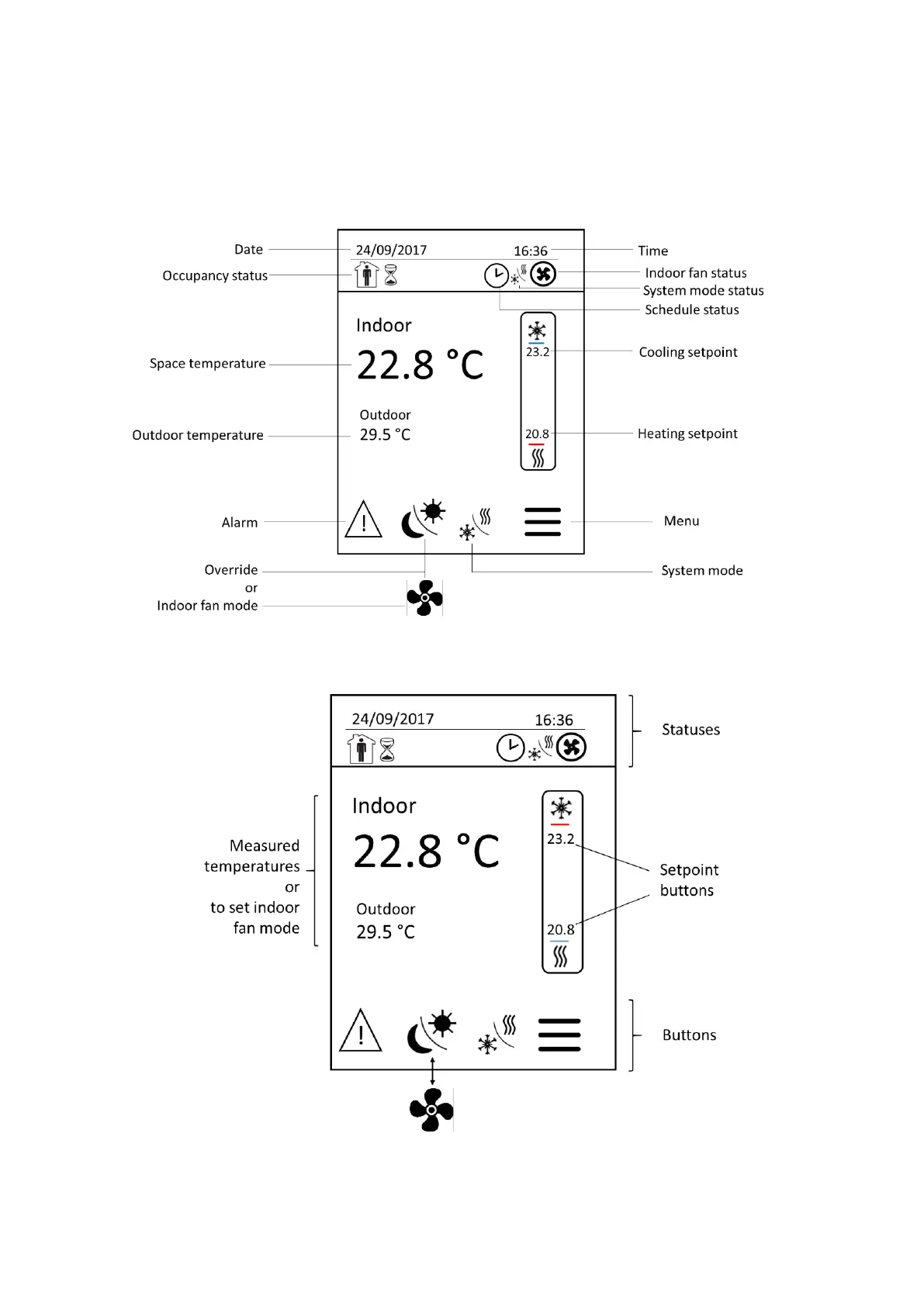 All user accessible functions are easily set from home screen.