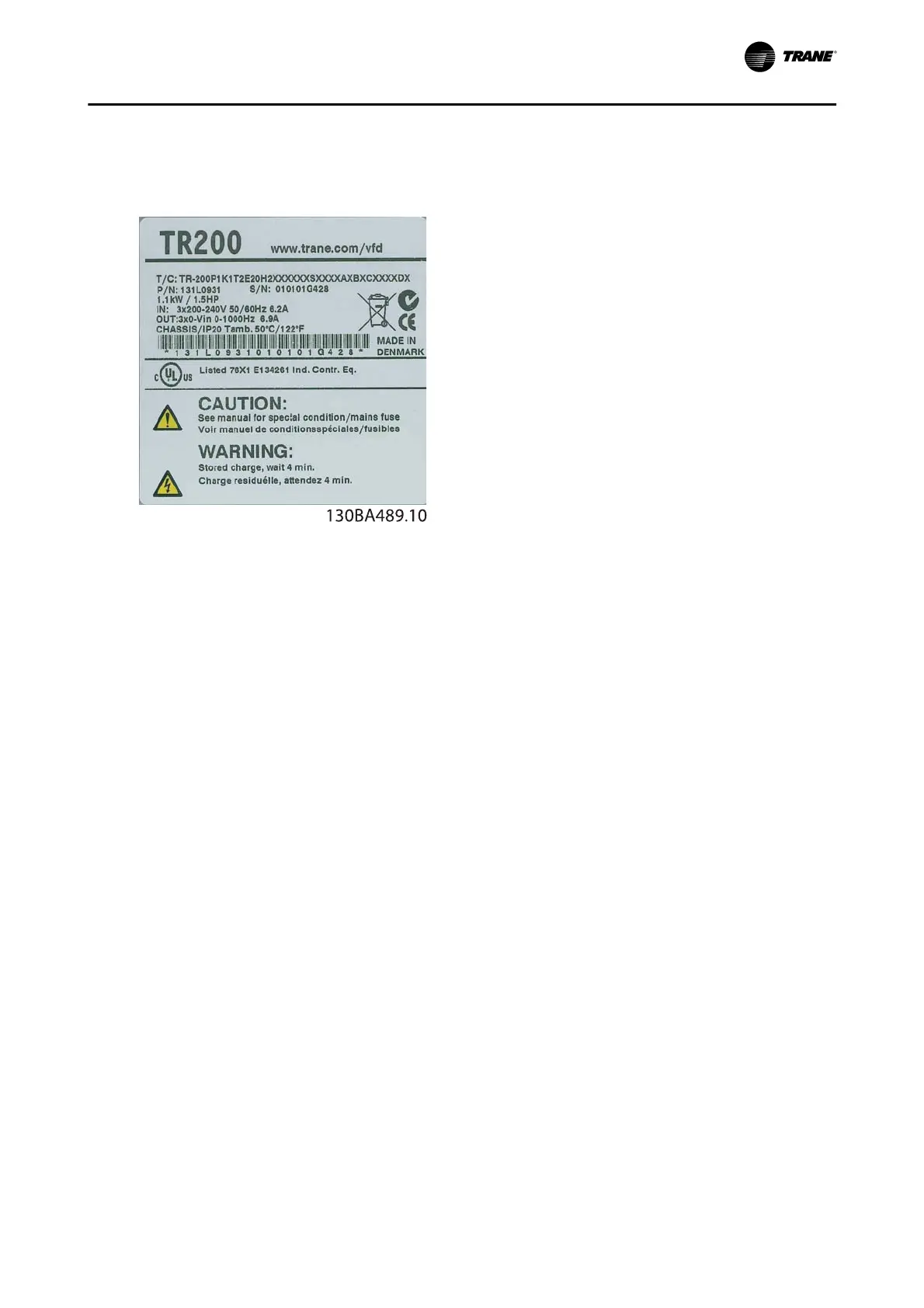Trane TR200 - Frequency Converter Identification