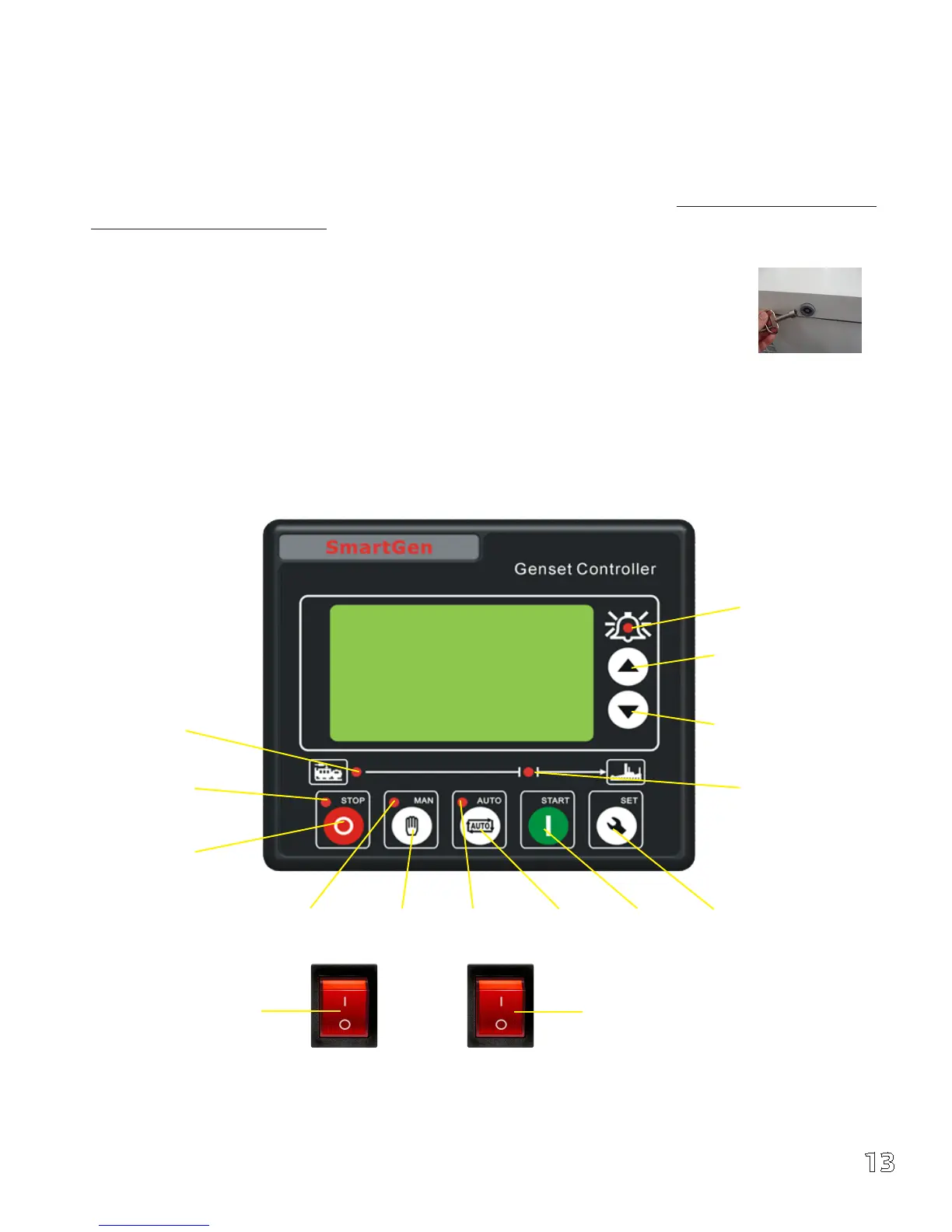 maintenance cover and make adjustment while generator is running. You must shut down the engine and