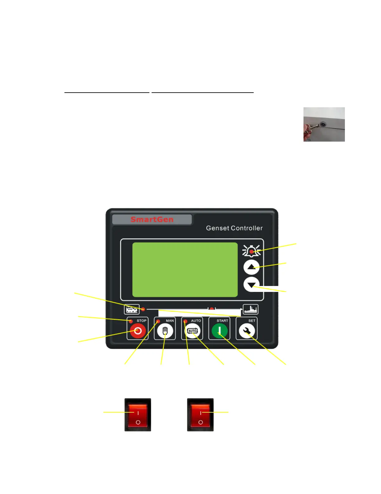 the maintenance cover and make adjustment while generator is running. You must shut down