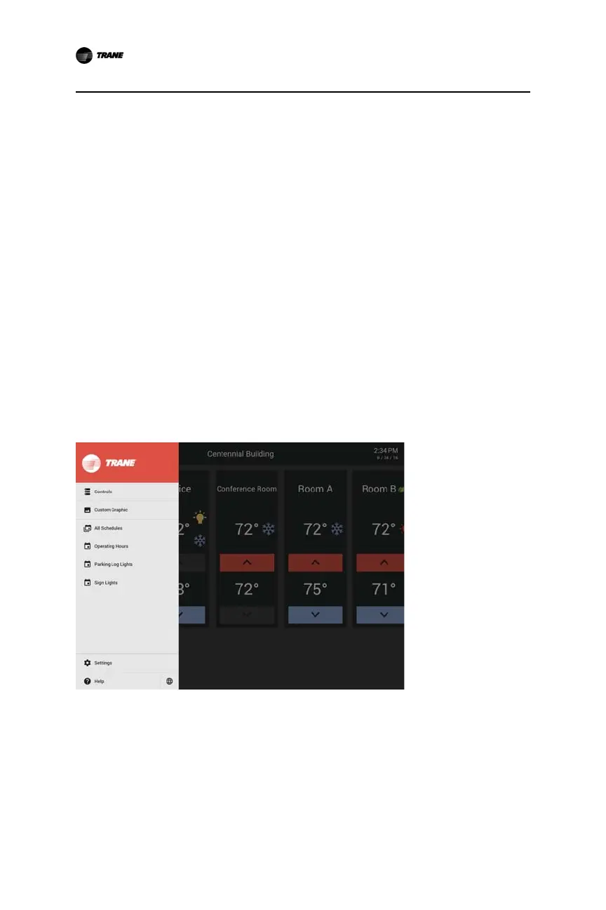 building. To navigate Tracer Concierge, touch the menu icon in the upper left of the