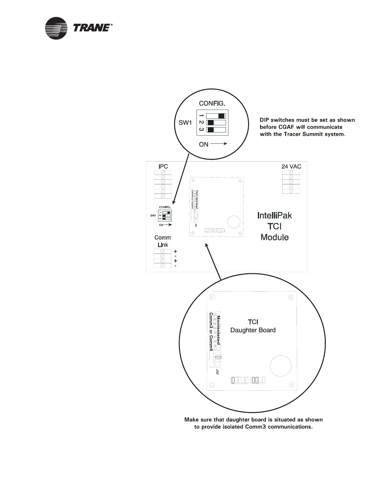 Figure 48. IntelliPak (CGAF) DIP Switch Settings and Daughter Board