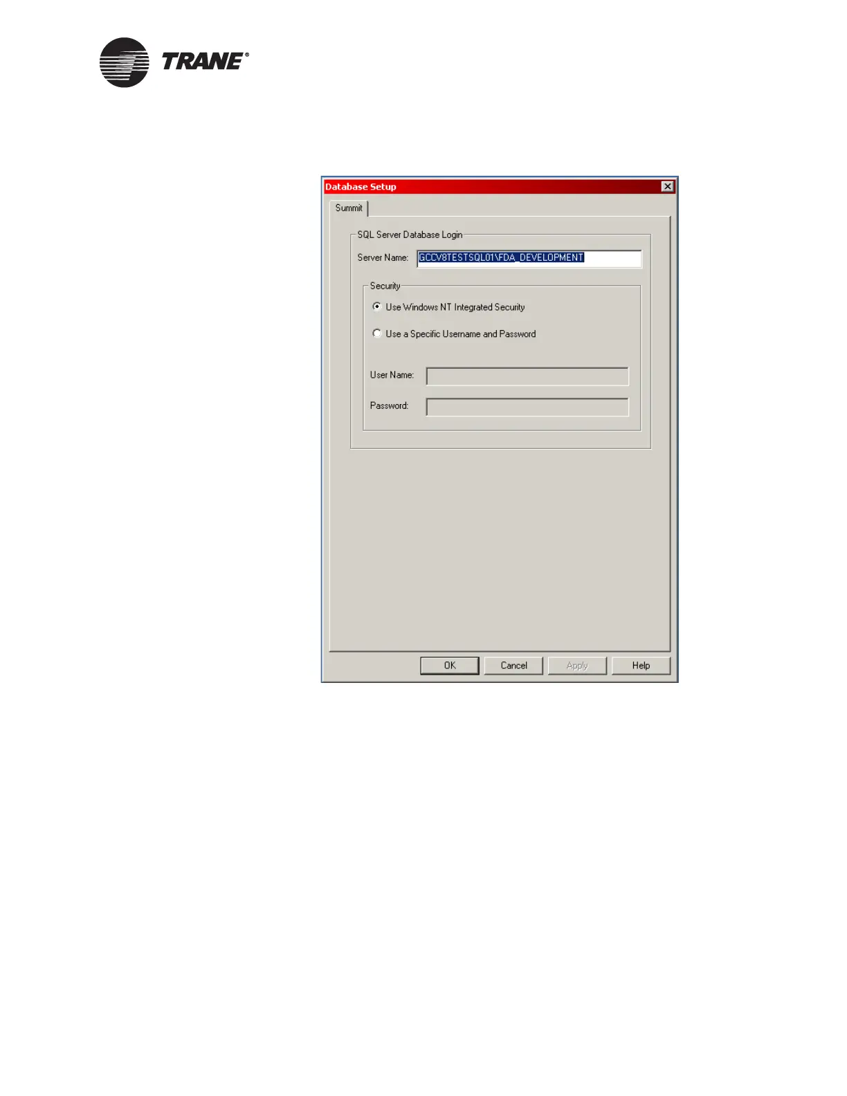 Server Name (the SQL system administrator can supply this informa-