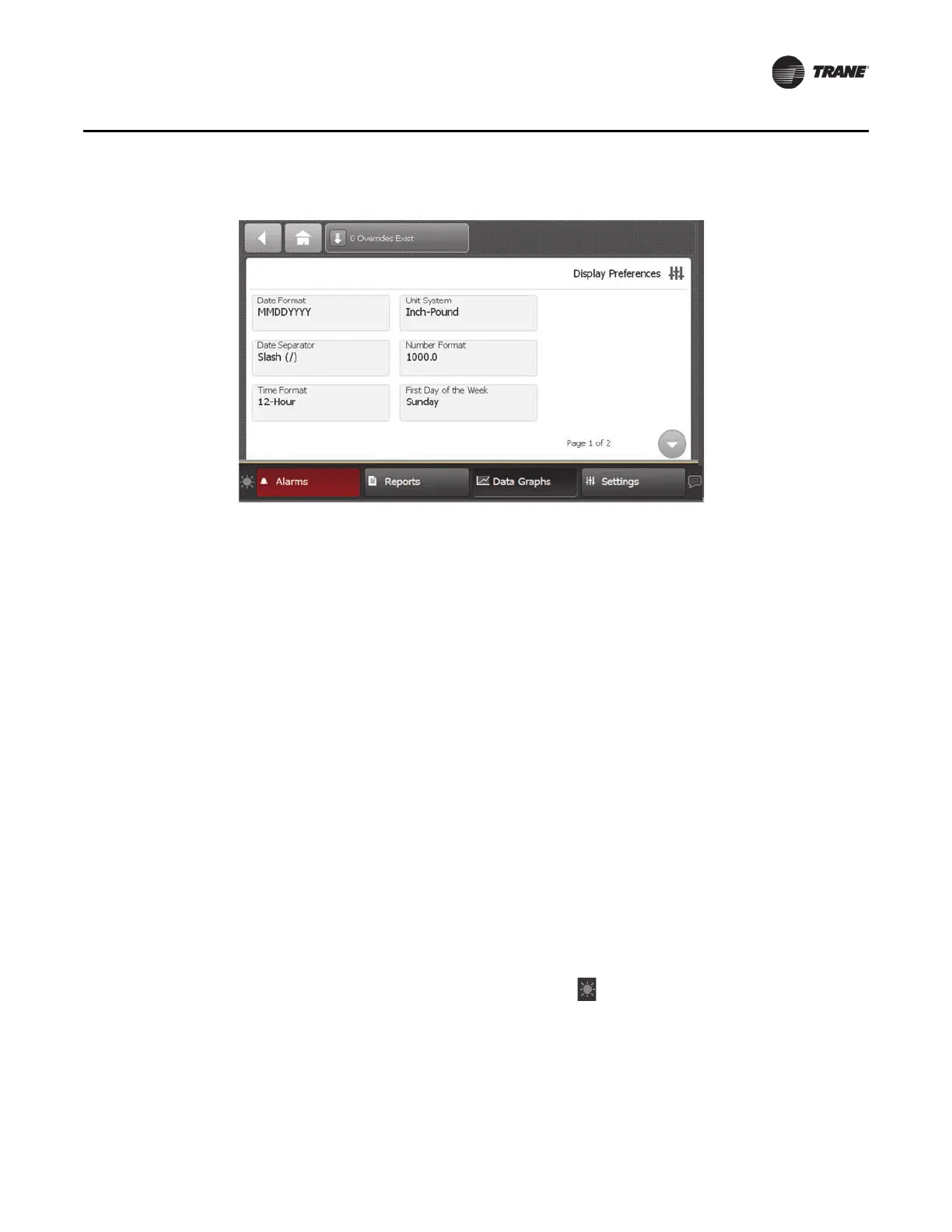 Touch the Unit System button to open the associated screen. Two options are available: SI (system