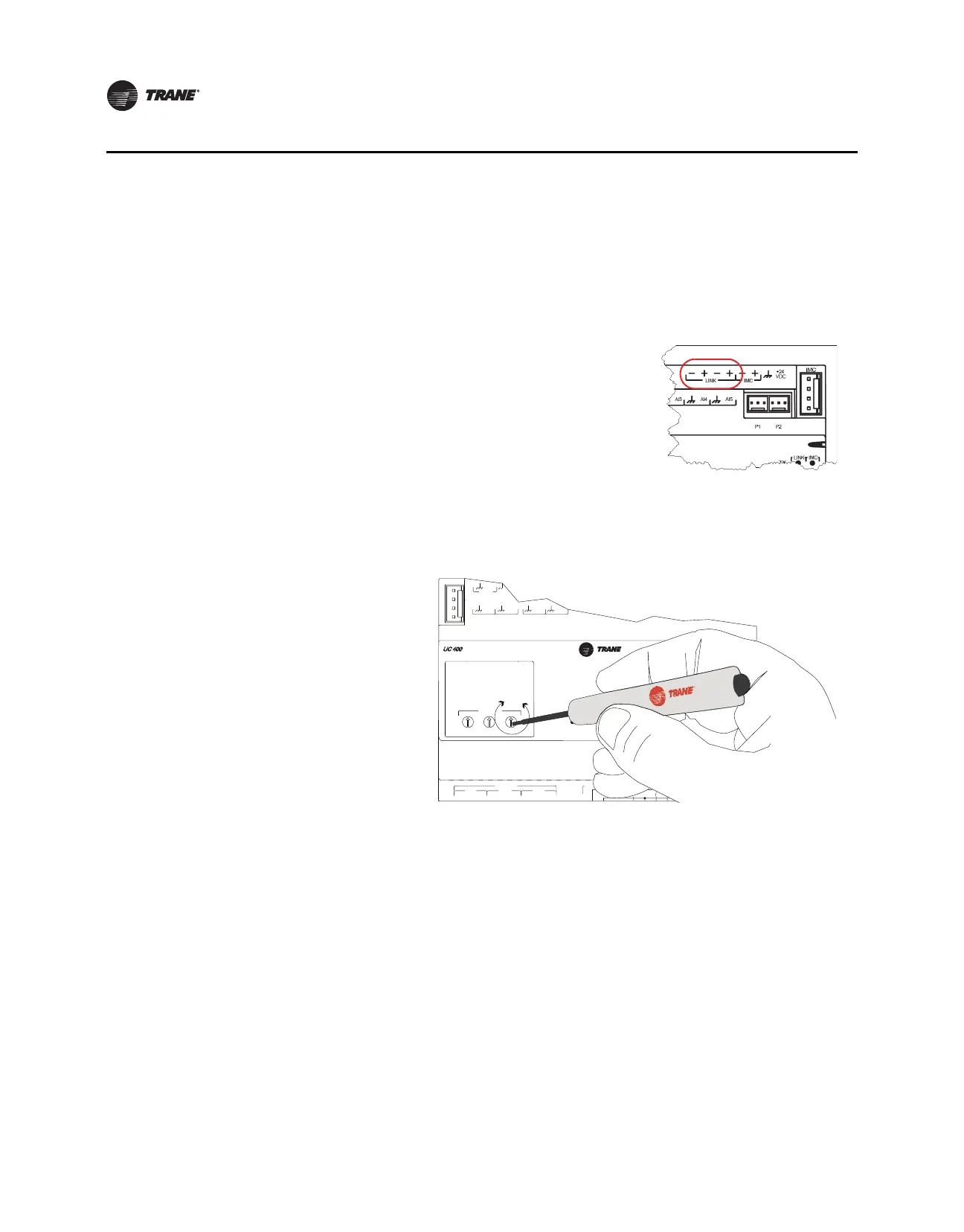 • Connect the BACnet link to the UC400 controller terminals