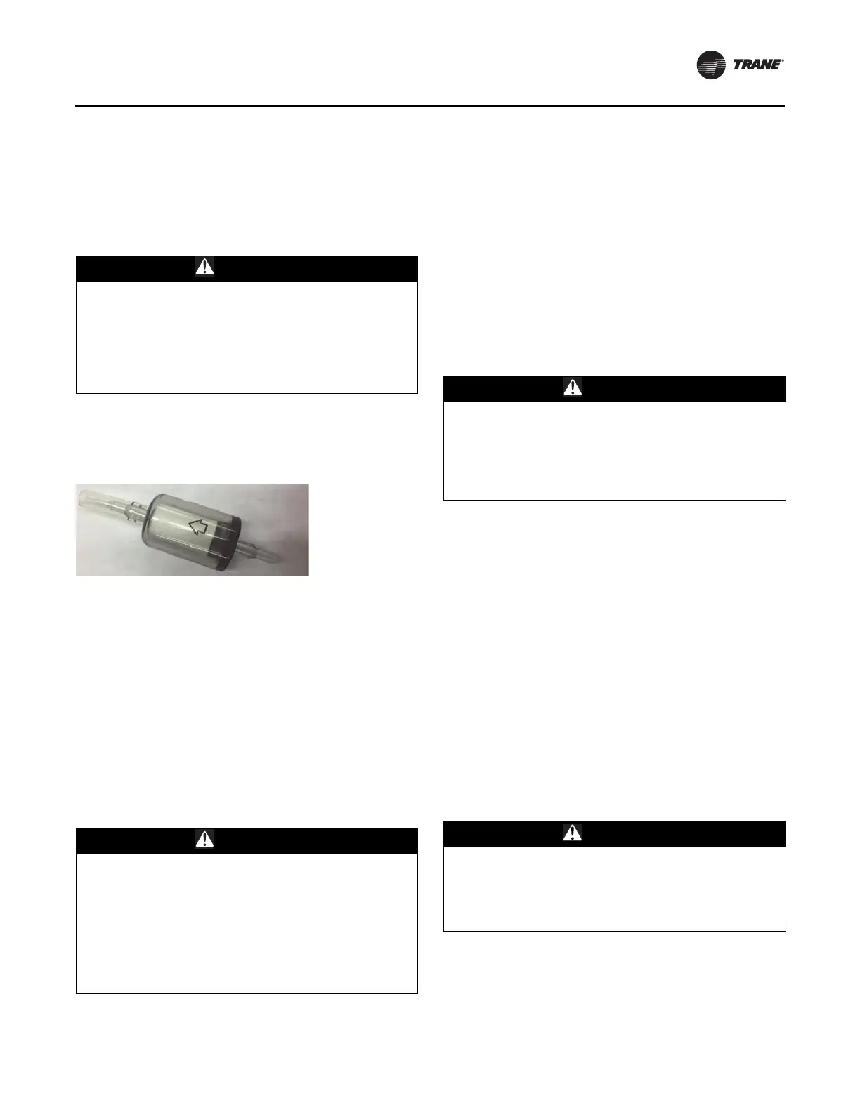 Install an end-of-line filter (Trane P/N FLR04743) in each