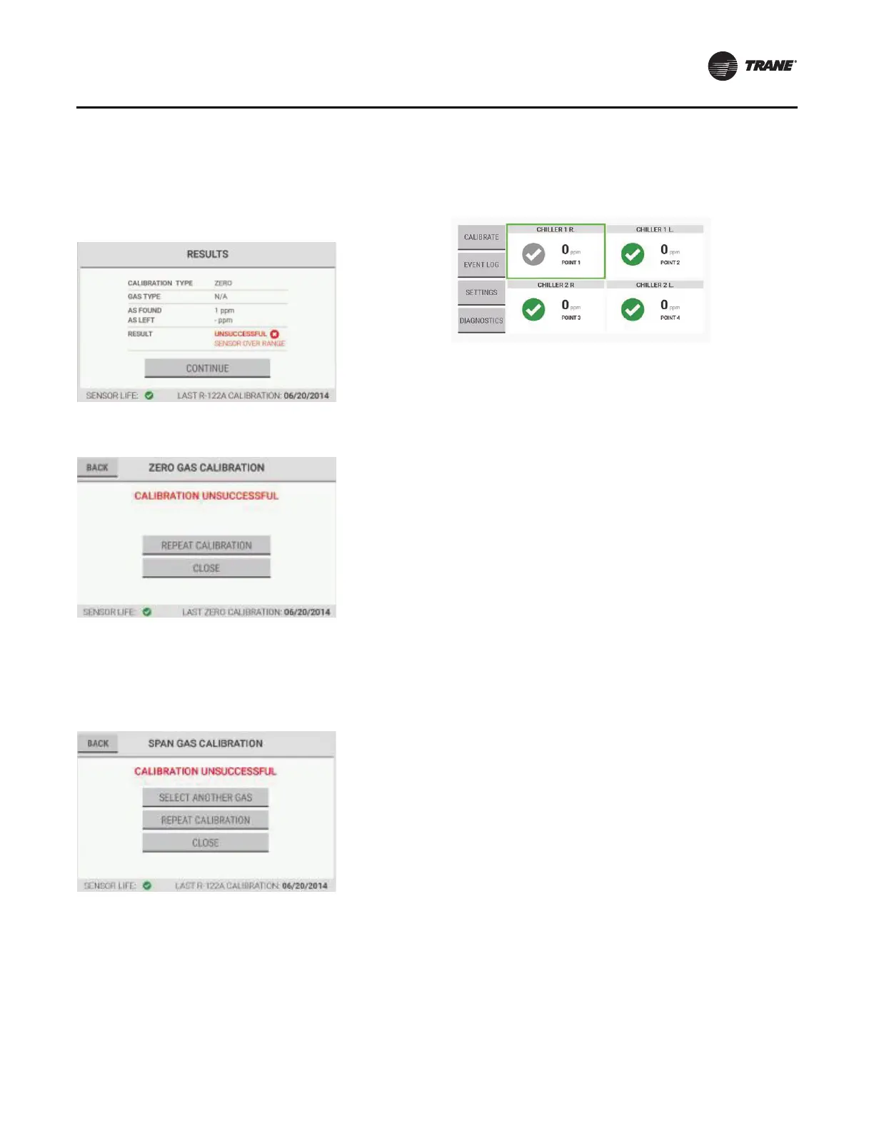 unsuccessful calibration. The gas readings for these